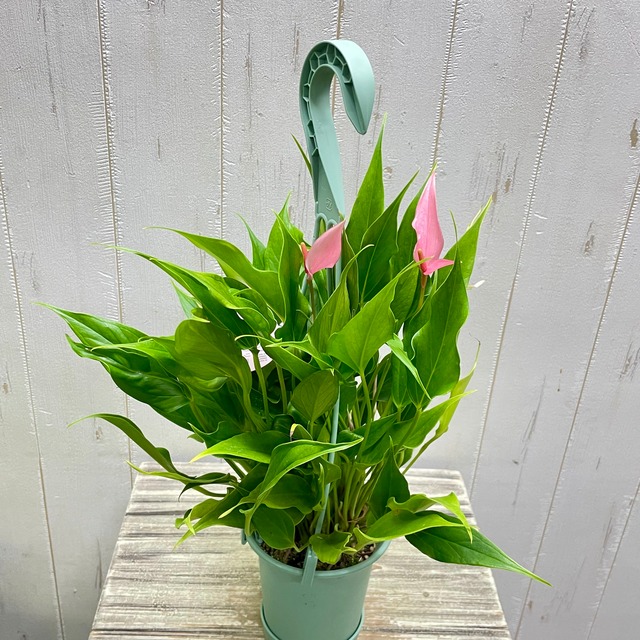 小花タイプ アンスリウム リリー 淡いピンク 吊り鉢 受皿付