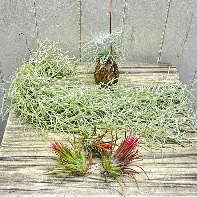 エアプランツ3点セット スパニッシュモス太葉 イオナンタ3株 テクトラム×ミントラボールハンギング