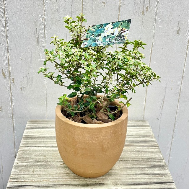 姫ヒイラギ テラコッタ植え 白い花と優しい香りのナチュラルグリーン