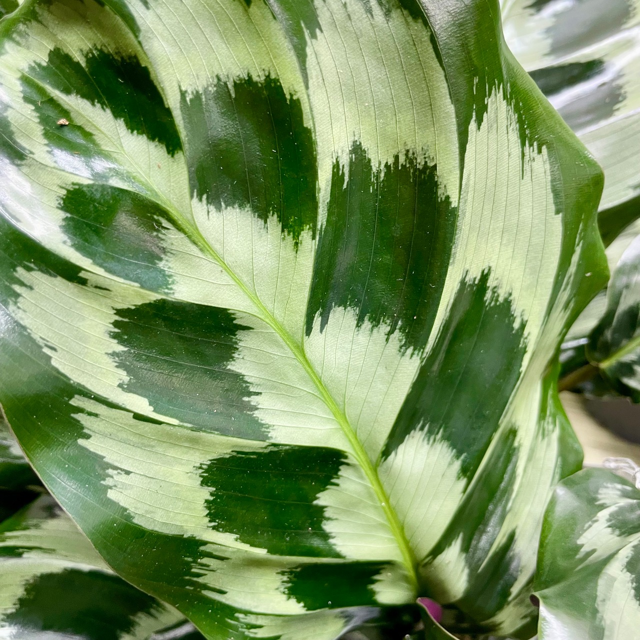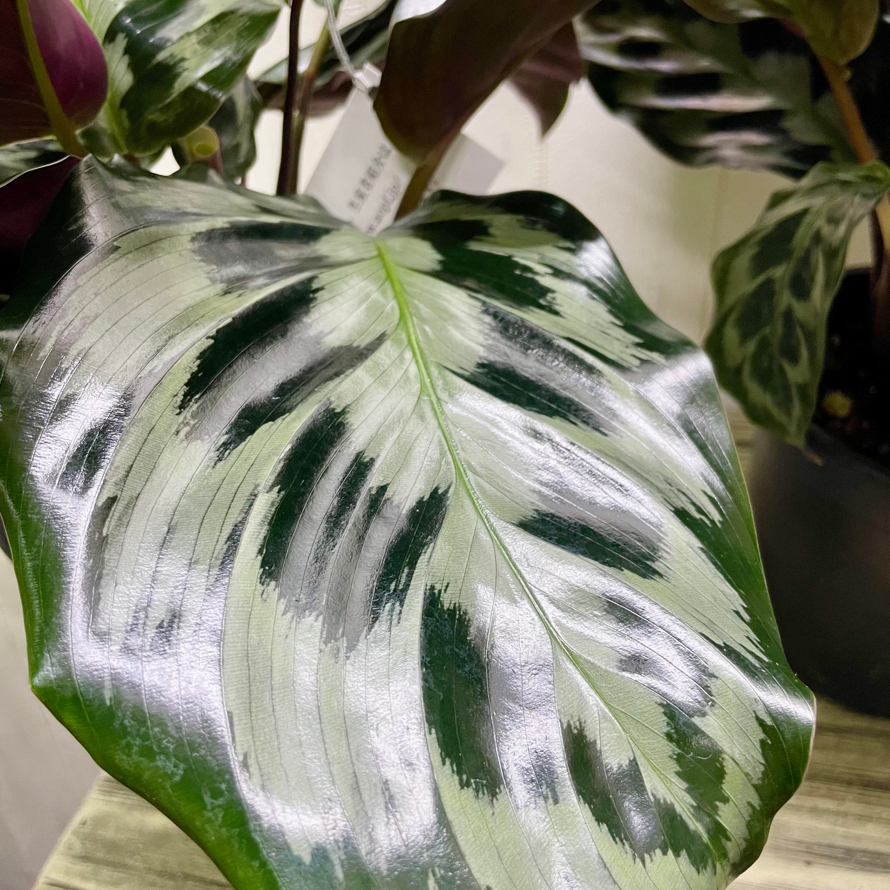 美しい深緑色の葉には、細やかな模様が入り、まるで自然が描いたアートのようです。