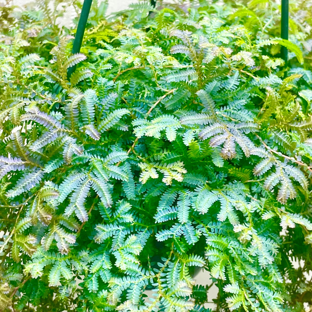 クラマゴケは、光の加減で、青みがかった色やレインボーに輝く葉っぱの様子からレインボーファンとの名前がついているイワヒバなどのシダ類の仲間です。