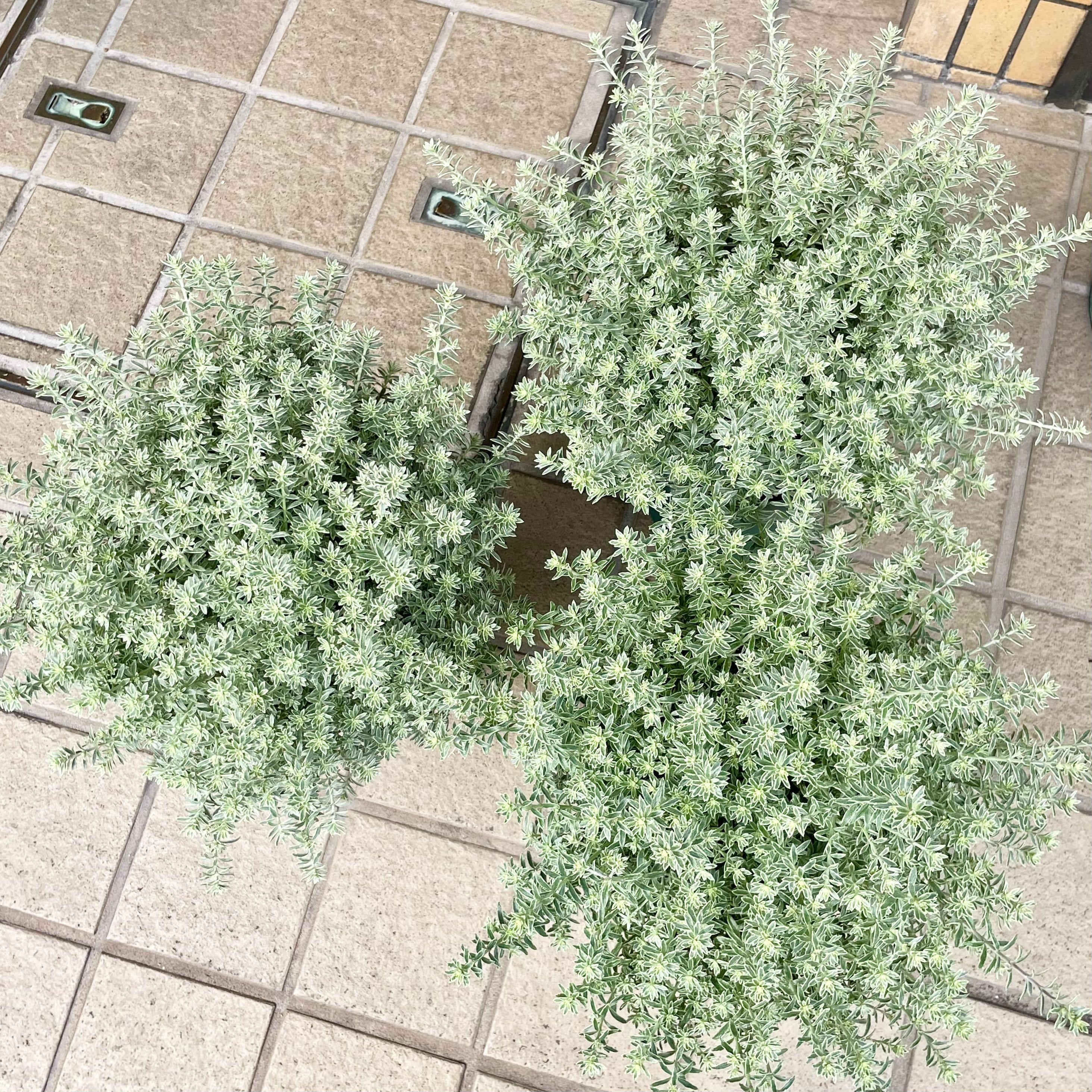 その名前の通り、細く繊細な葉姿がローズマリーにどこか似ているのですが、実はハーブではなく観賞用の常緑低木。ローズマリーよりも柔らかく、触れるとふんわりとした印象です。葉色はグリーンとシルバーが溶け合ったようなニュアンスカラーで、見れば見るほど惹きこまれるような美しさ。
