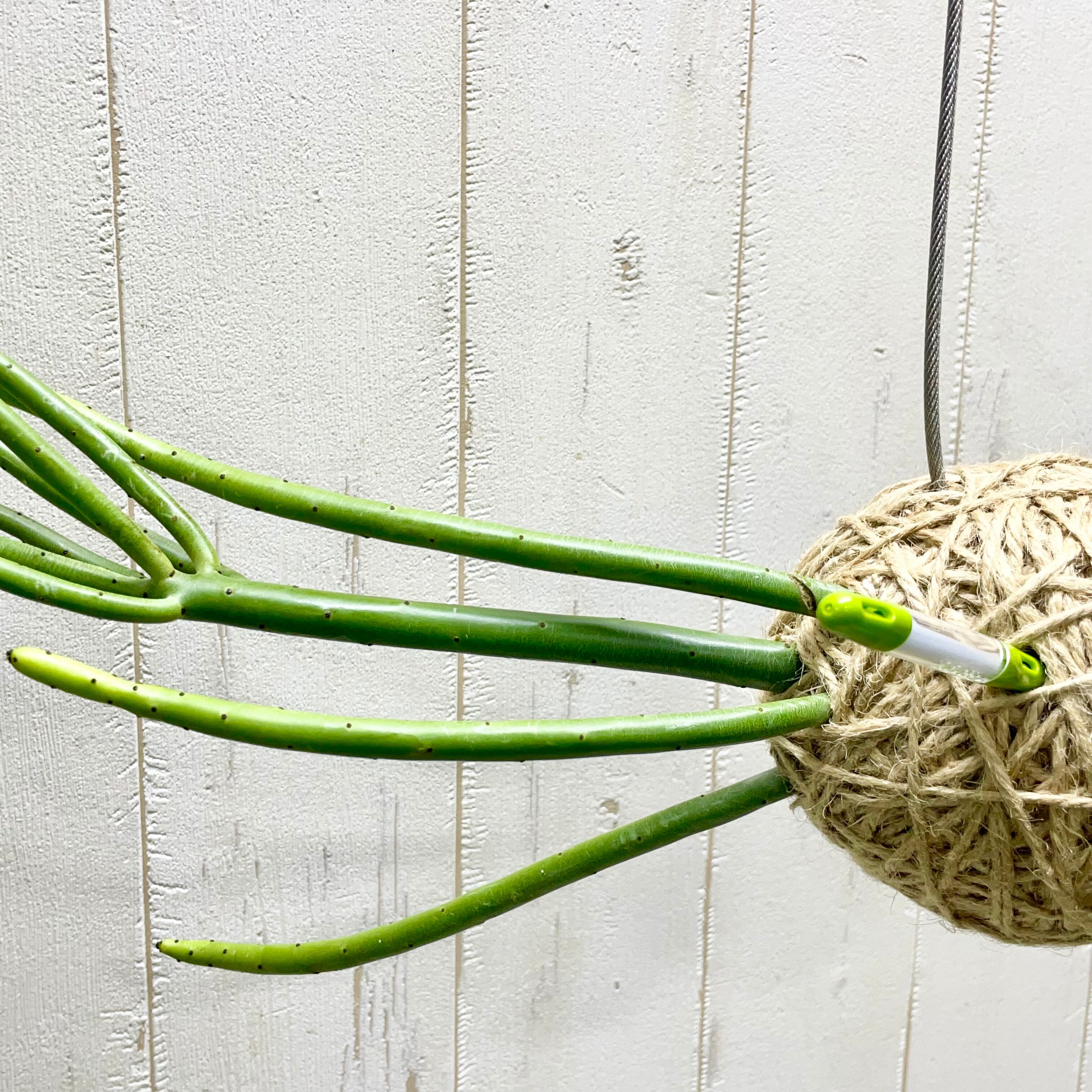 乾燥に強く育てやすい ユーフォルビア オンコクラータ 麻玉ハンギング仕立て 水位計付