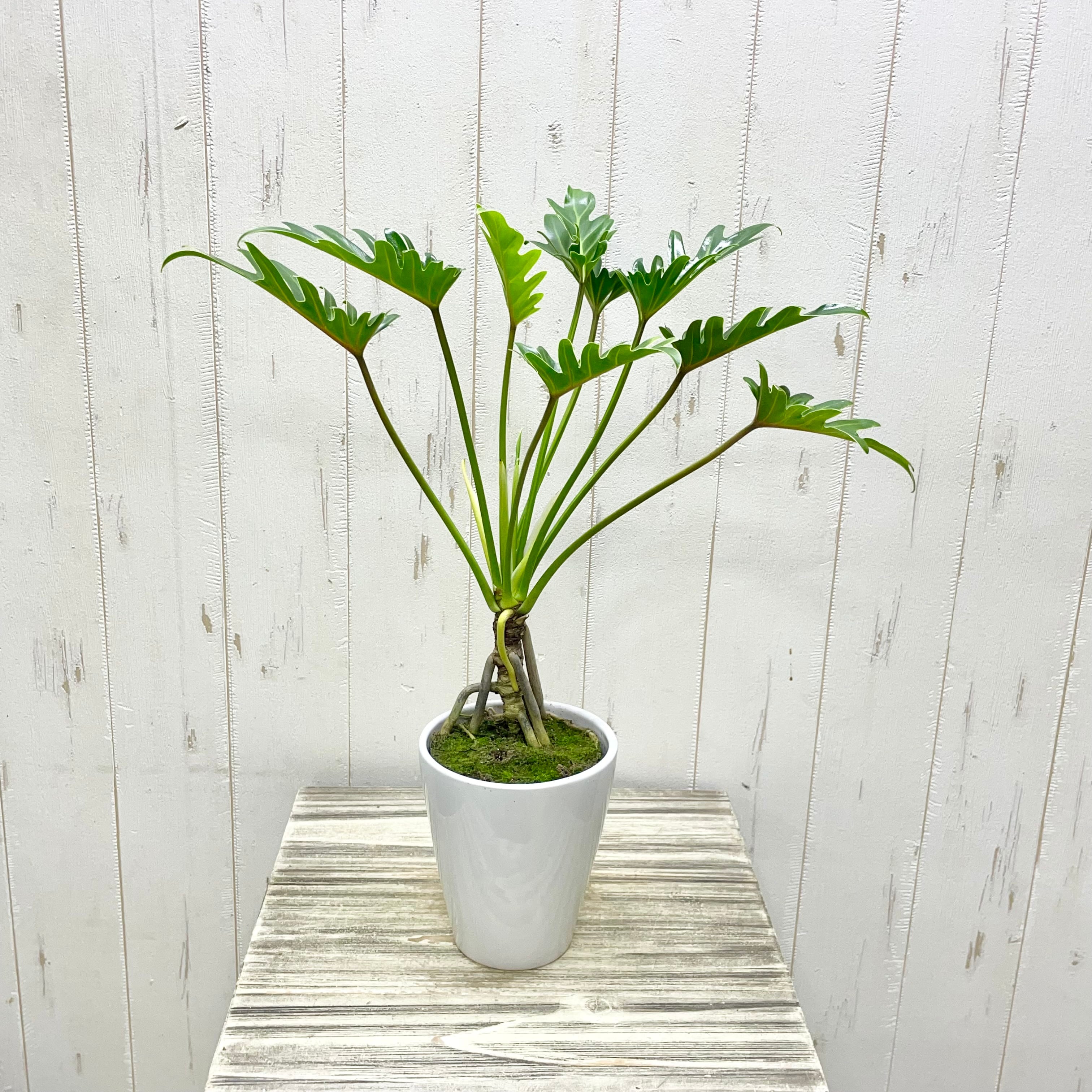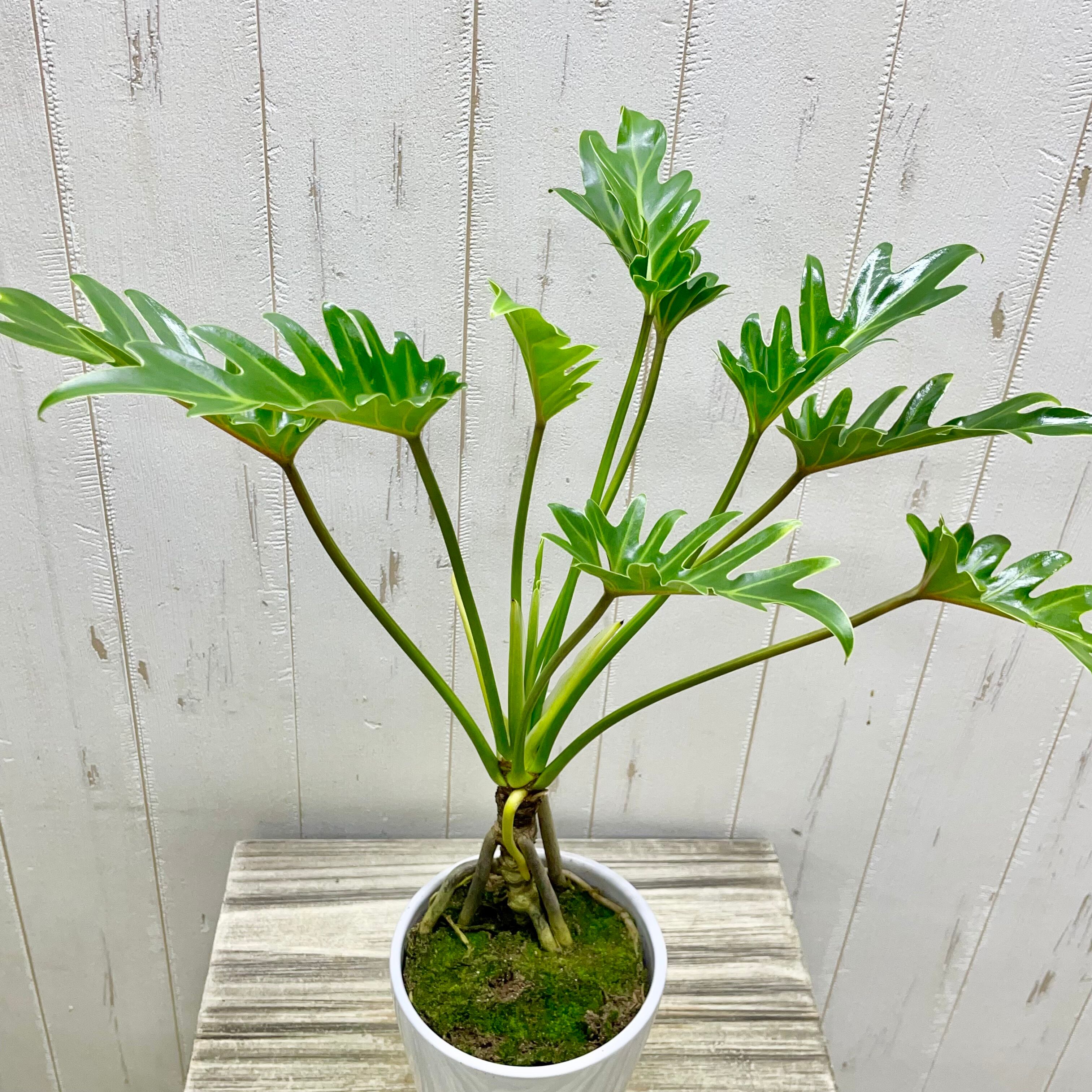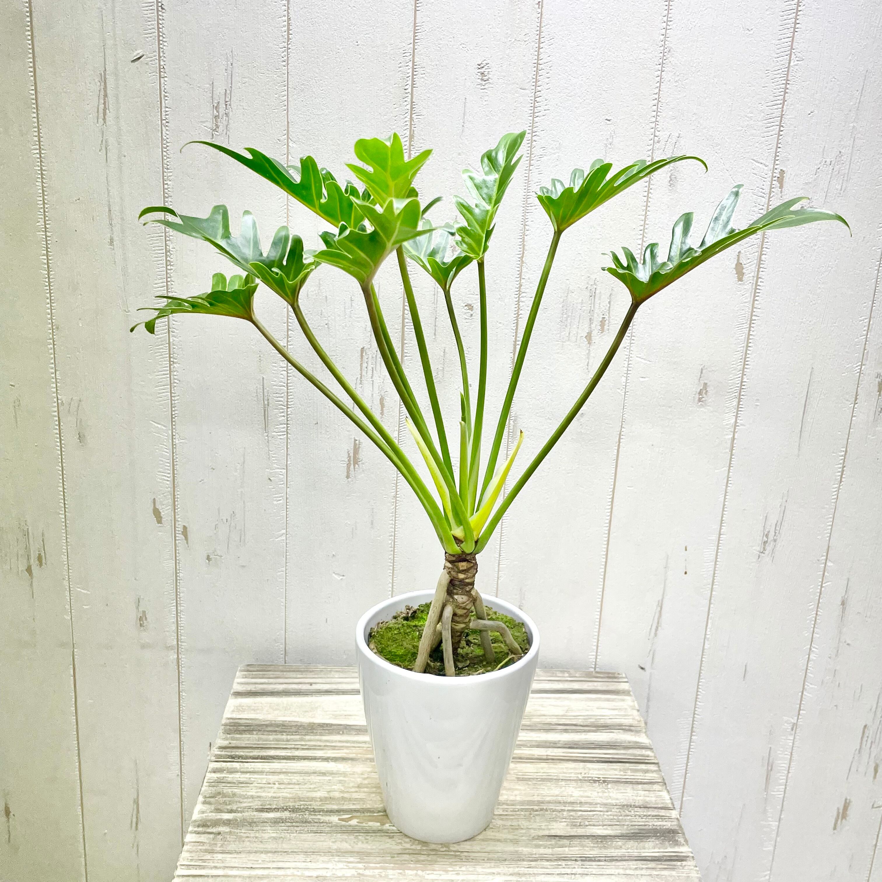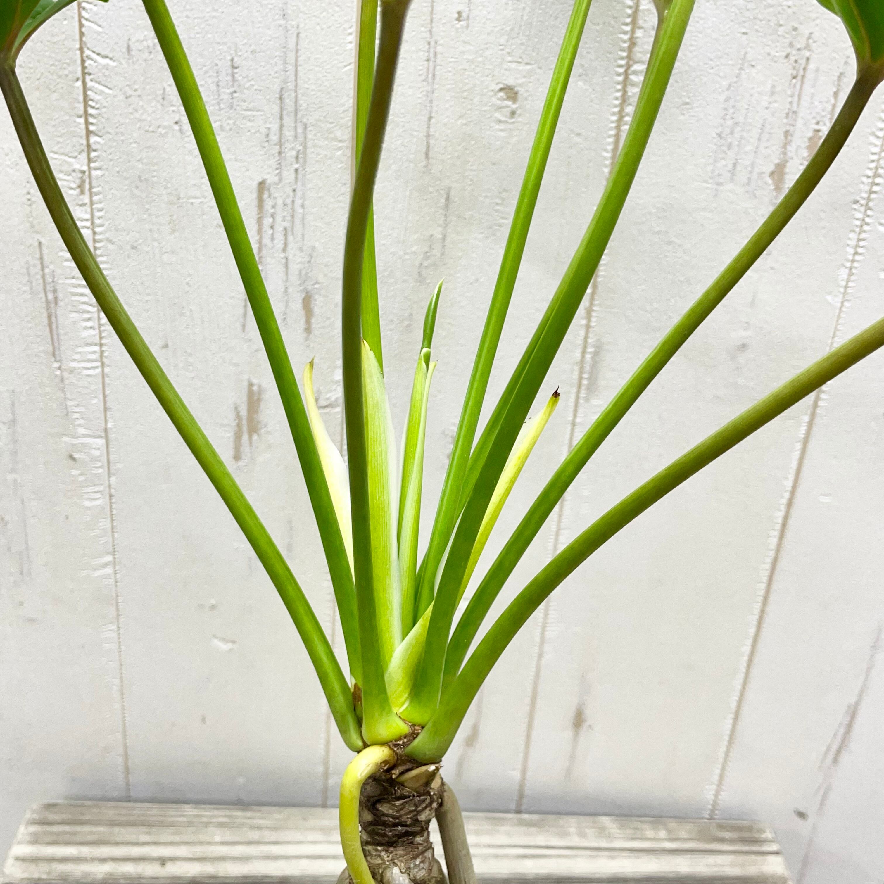 個性的なフォルムが魅力の根上がりクッカバラ。根元が持ち上がったような姿と鮮やかな葉色が、お部屋に自然のアートを届けます。