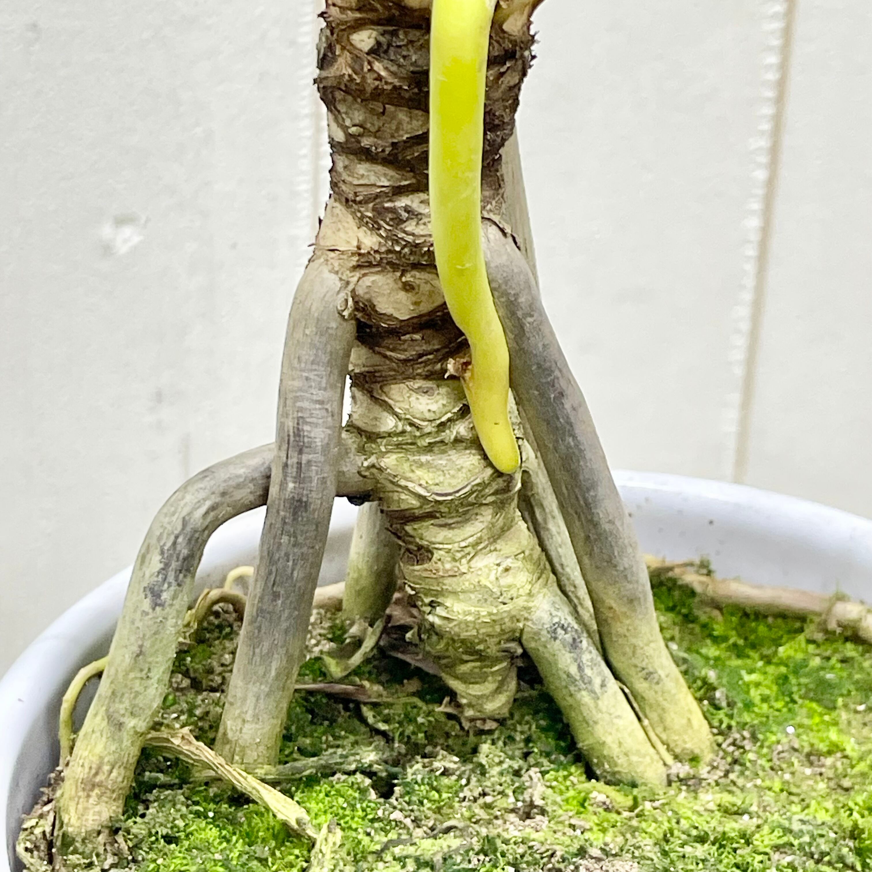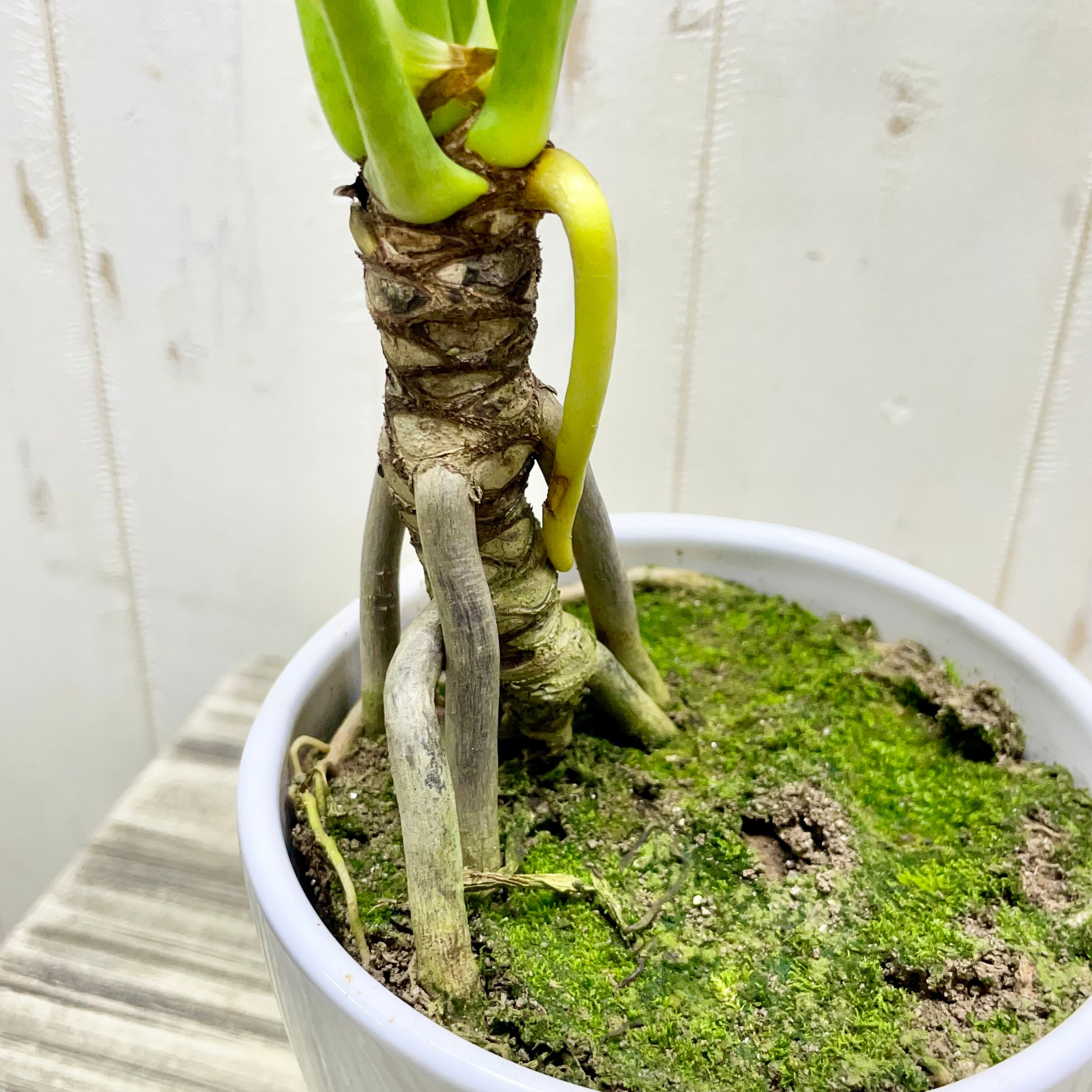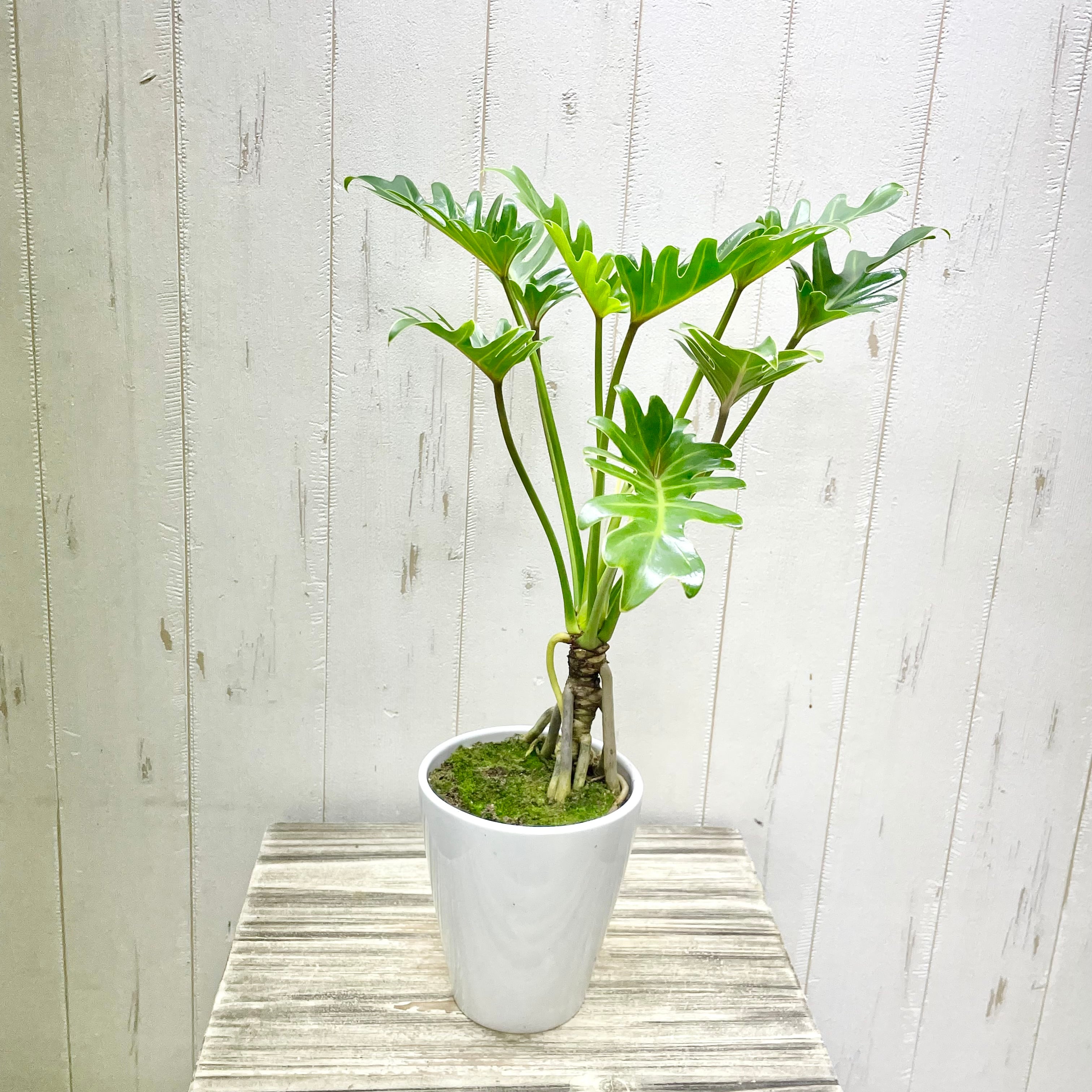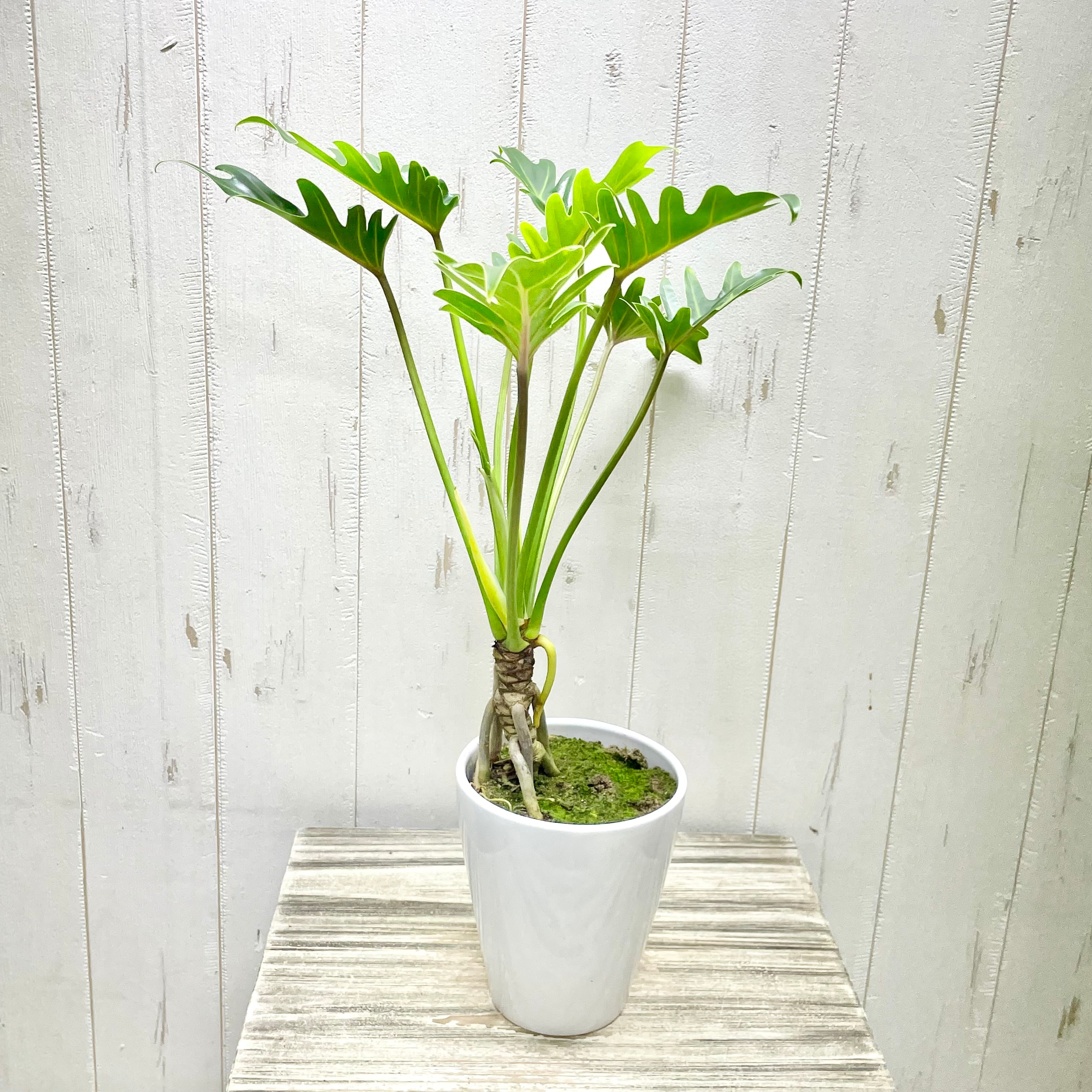 個性的なフォルムが魅力の根上がりクッカバラ。根元が持ち上がったような姿と鮮やかな葉色が、お部屋に自然のアートを届けます。