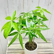3本のパキラが自然のままにすらりと成長した姿を、そのままお楽しみいただける一鉢です。