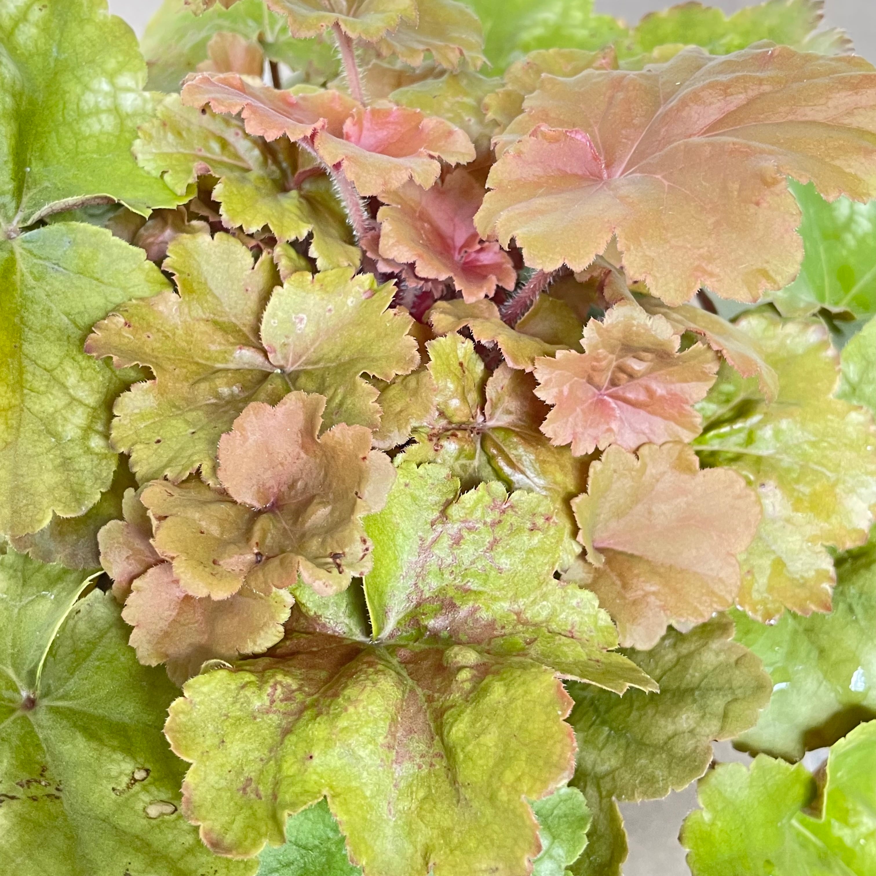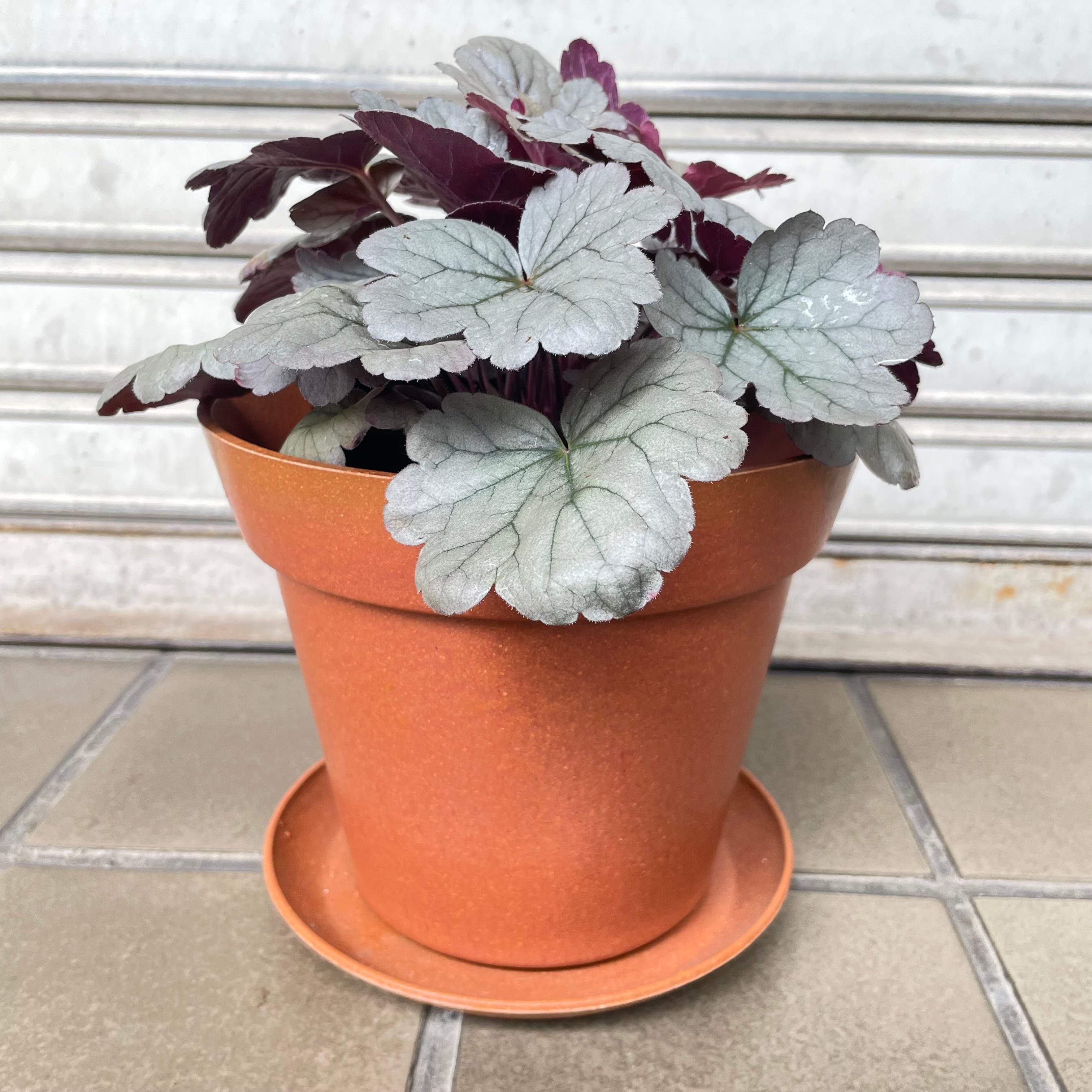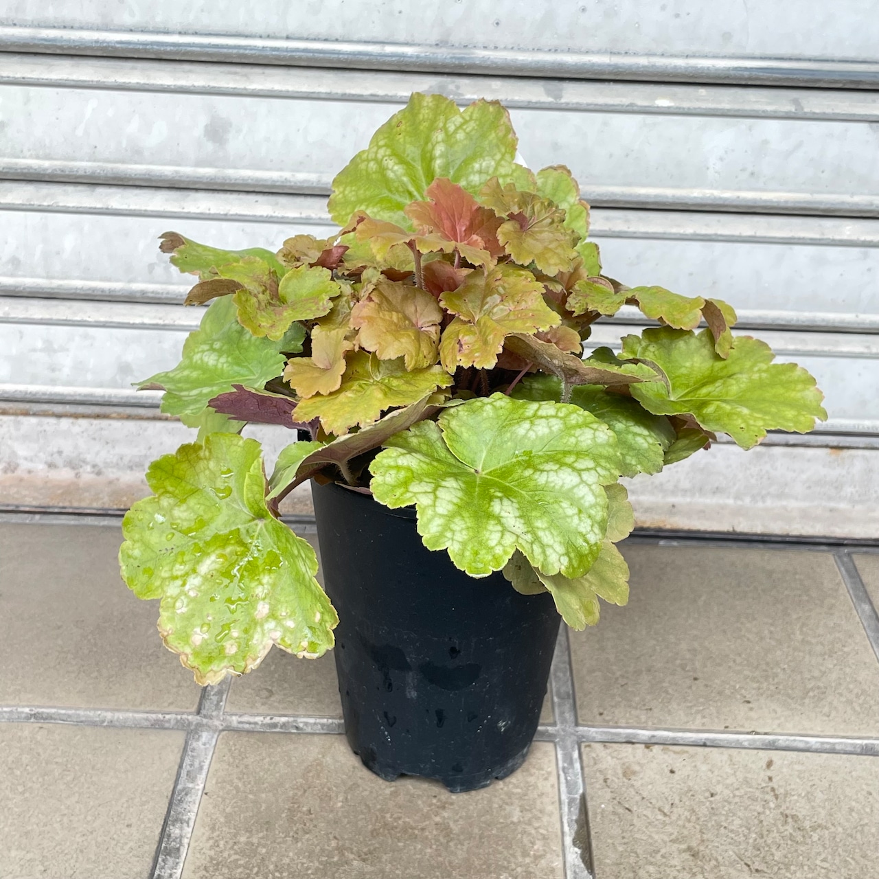 ヒューケラは、四季折々の表情を楽しめるカラーリーフプランツです。春夏はやわらかな彩りの葉色、秋から冬にかけてはさらに深みのある発色となり、紅葉のような美しい色合いを見せてくれます。