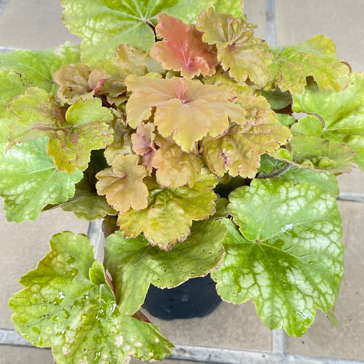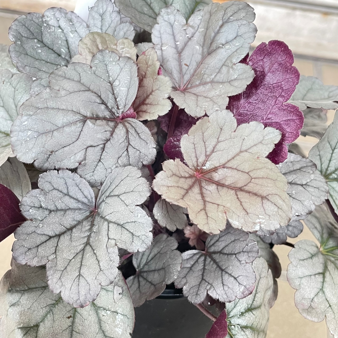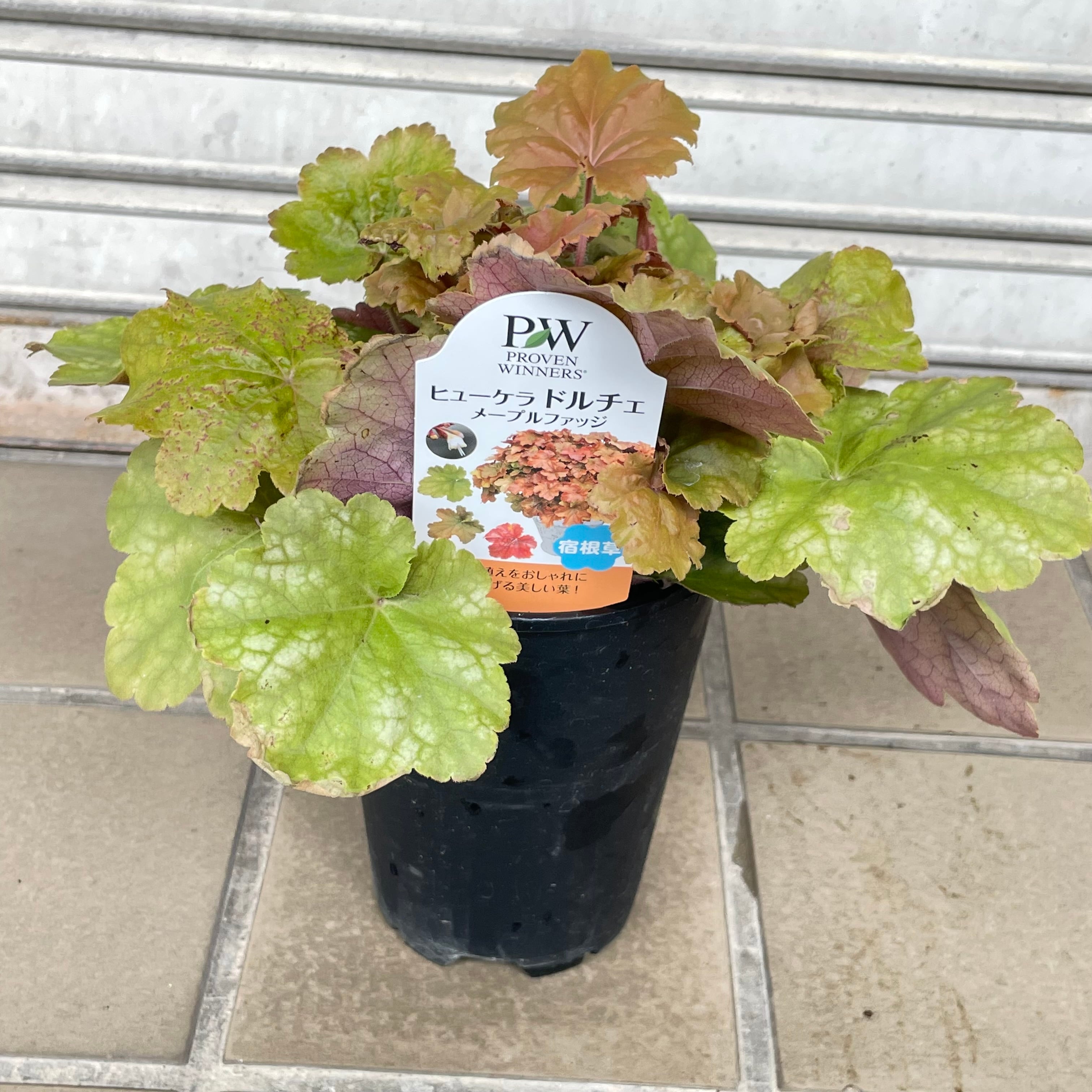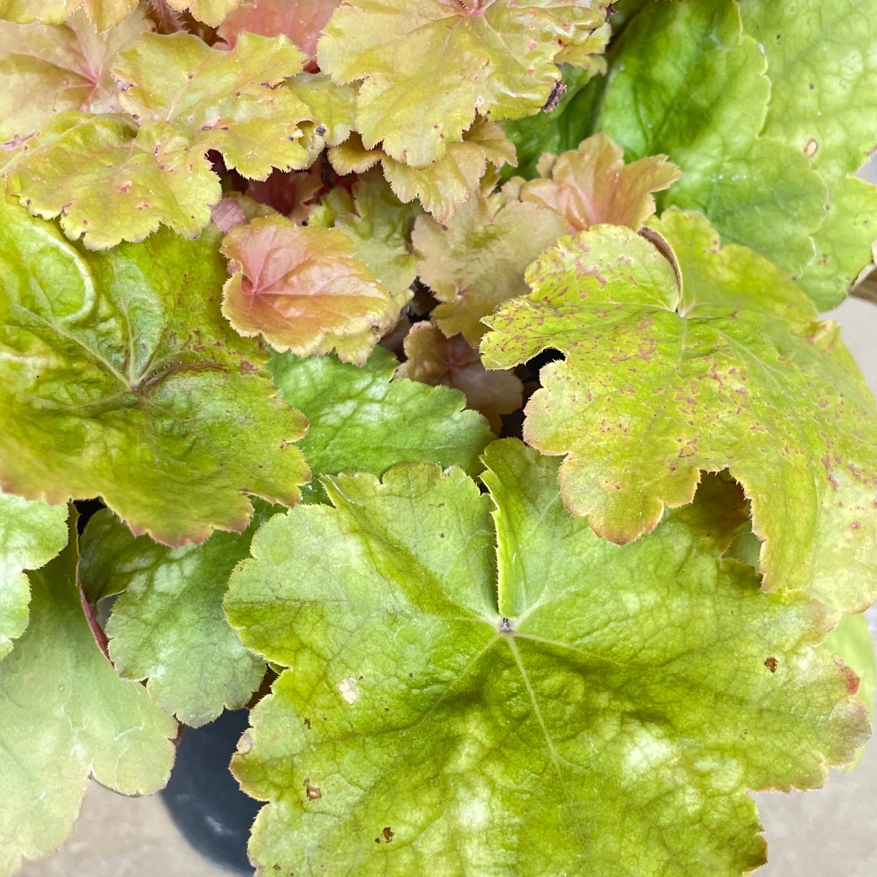 ヒューケラは、四季折々の表情を楽しめるカラーリーフプランツです。春夏はやわらかな彩りの葉色、秋から冬にかけてはさらに深みのある発色となり、紅葉のような美しい色合いを見せてくれます。