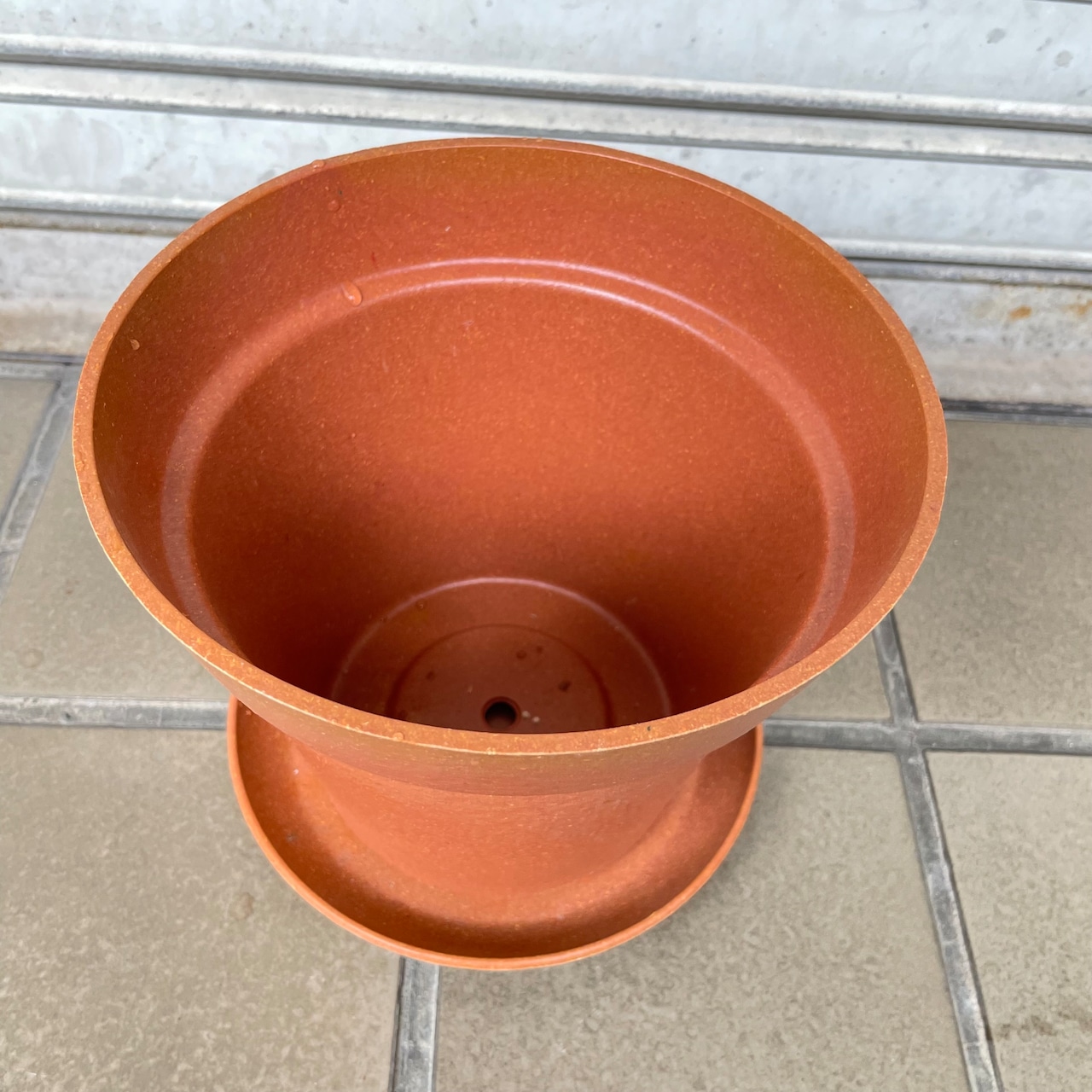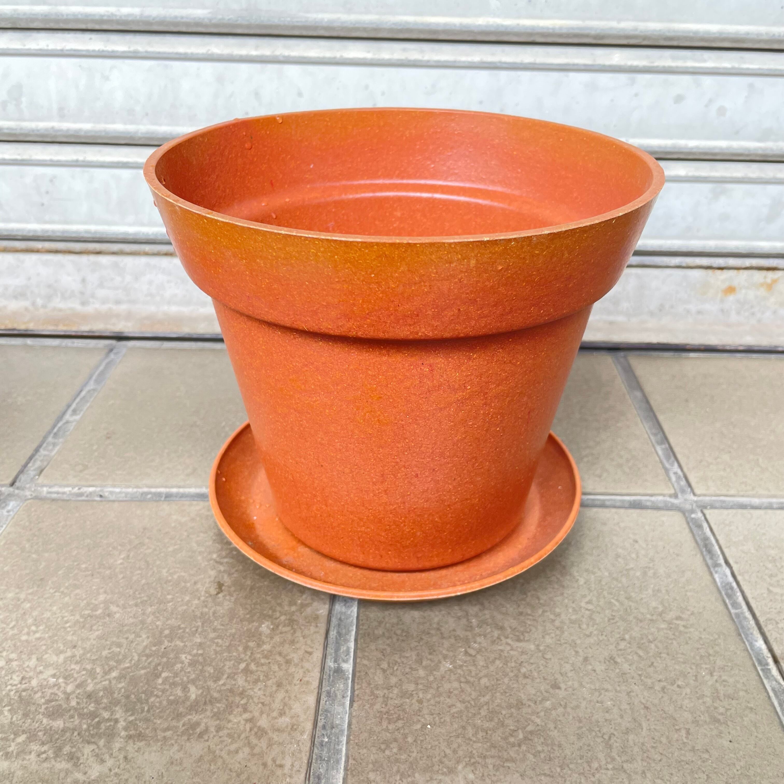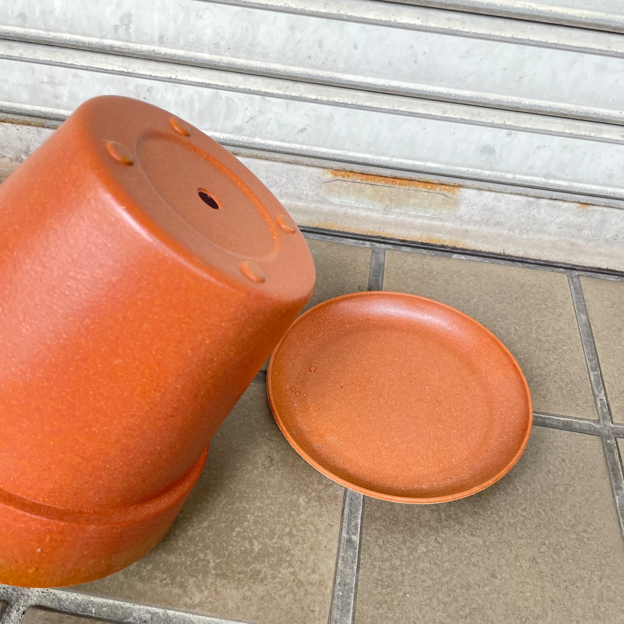 竹繊維を混ぜたナチュラルな風合いの鉢に、受け皿をセット。