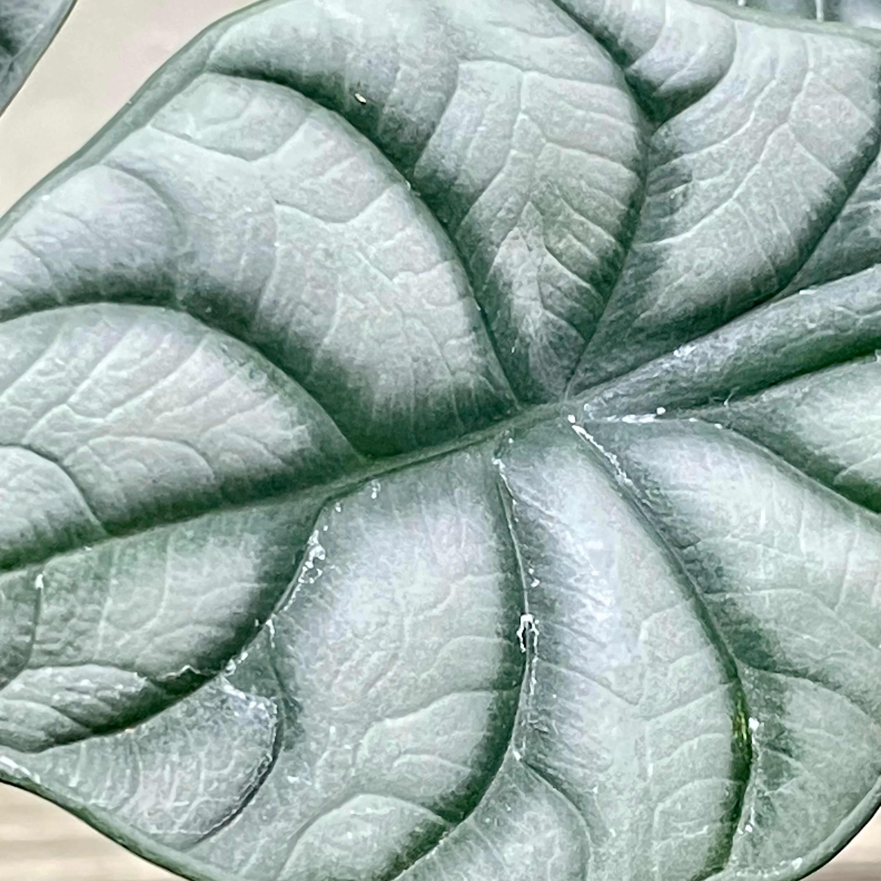 深いグリーンの葉脈と、シルバーの葉面が重なることで生まれる独特の立体感。