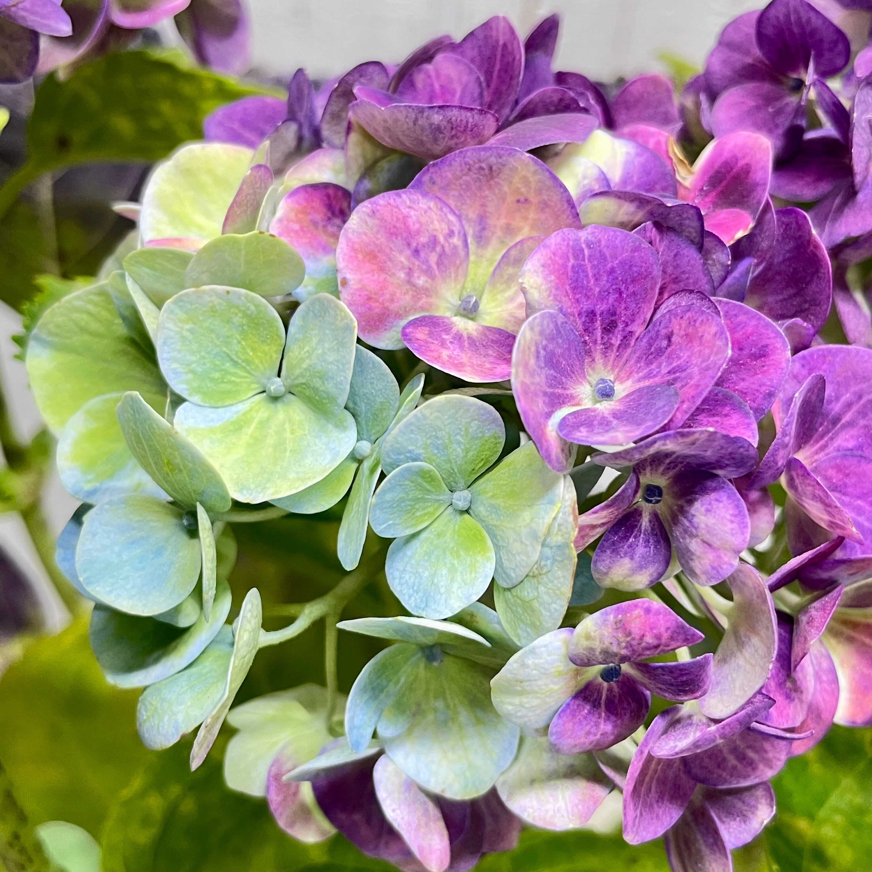 紫陽花というと母の日前後に楽しむ印象がありますが、季節外れに訪れた特別な彩りを楽しめるのは、今回の株ならではの魅力です。