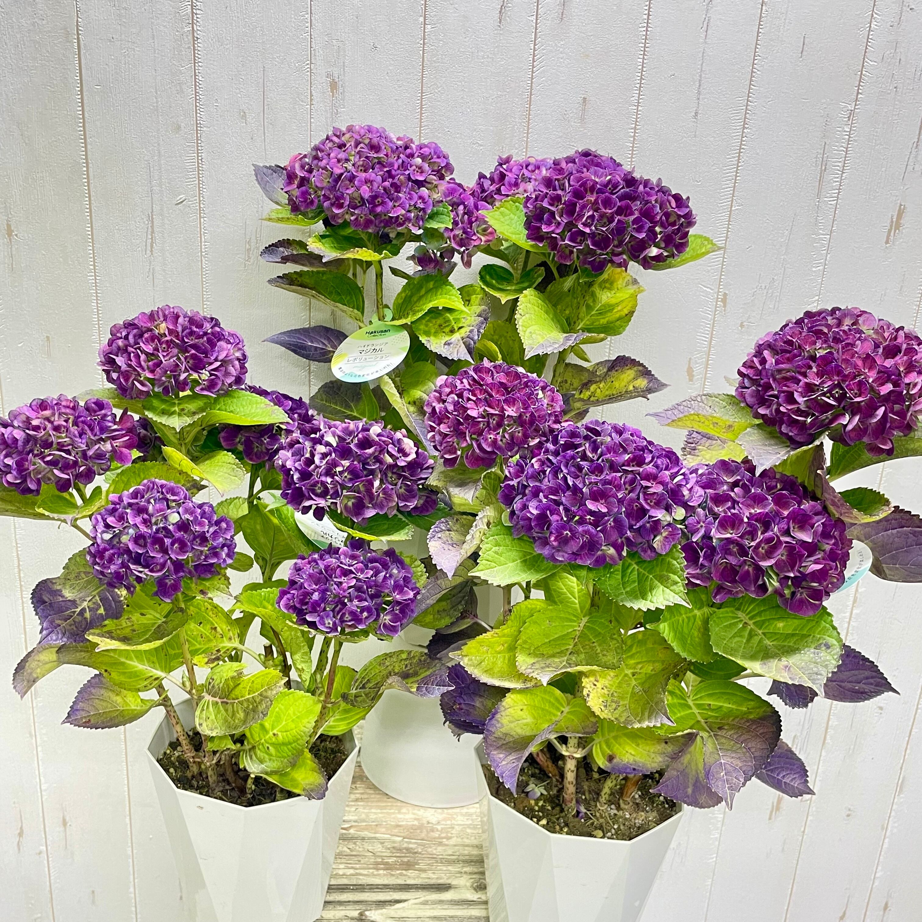 紫陽花の中でもマジカルレボリューションは、花色の変化が特に顕著なシリーズです。
