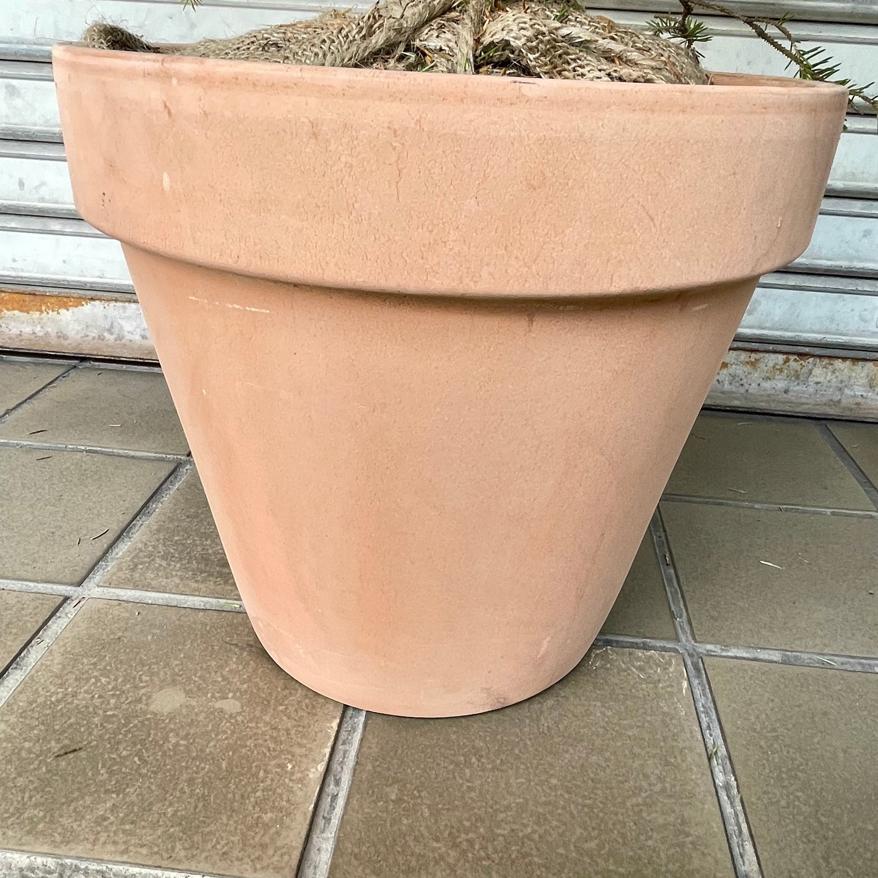 青みがかった針葉がひときわ美しい、コロラドトウヒのテラコッタ植えです。