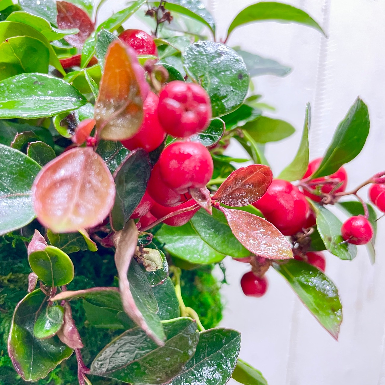 チェッカーベリー(ゴールテリア)は寒さに強く、冬に実が色づく植物。