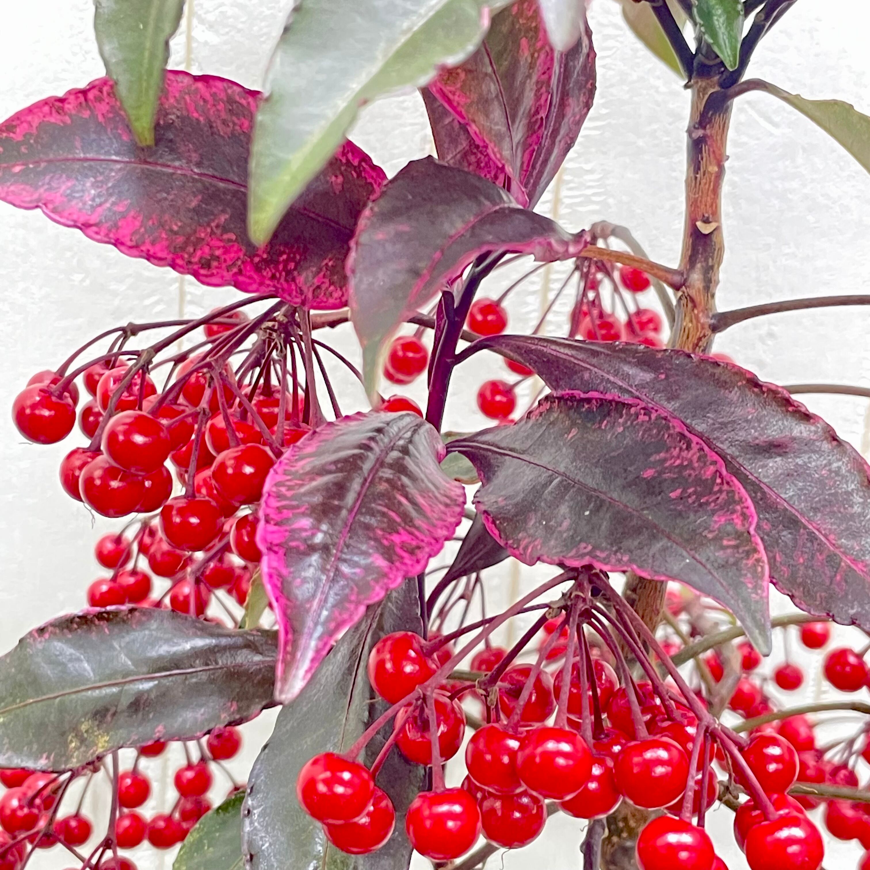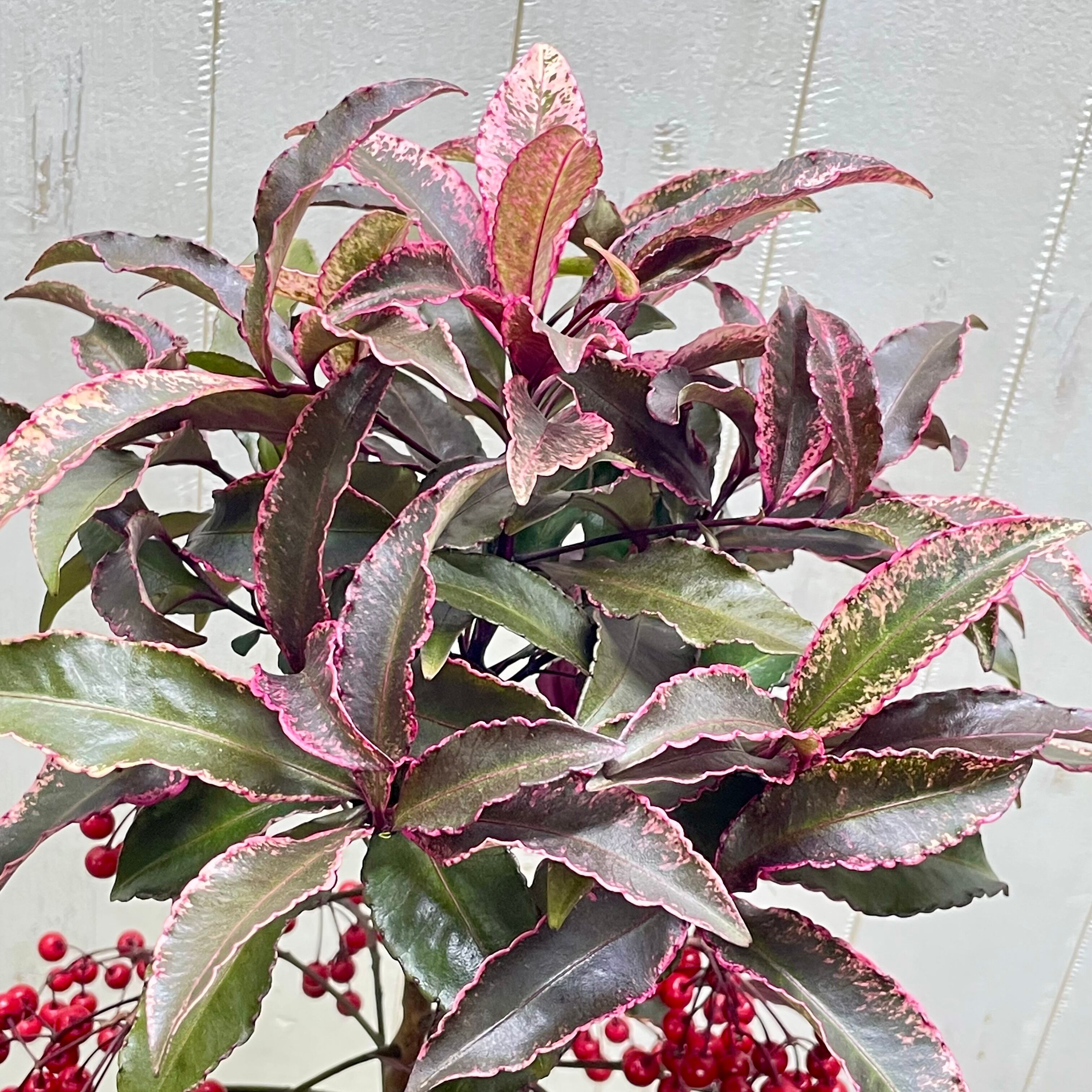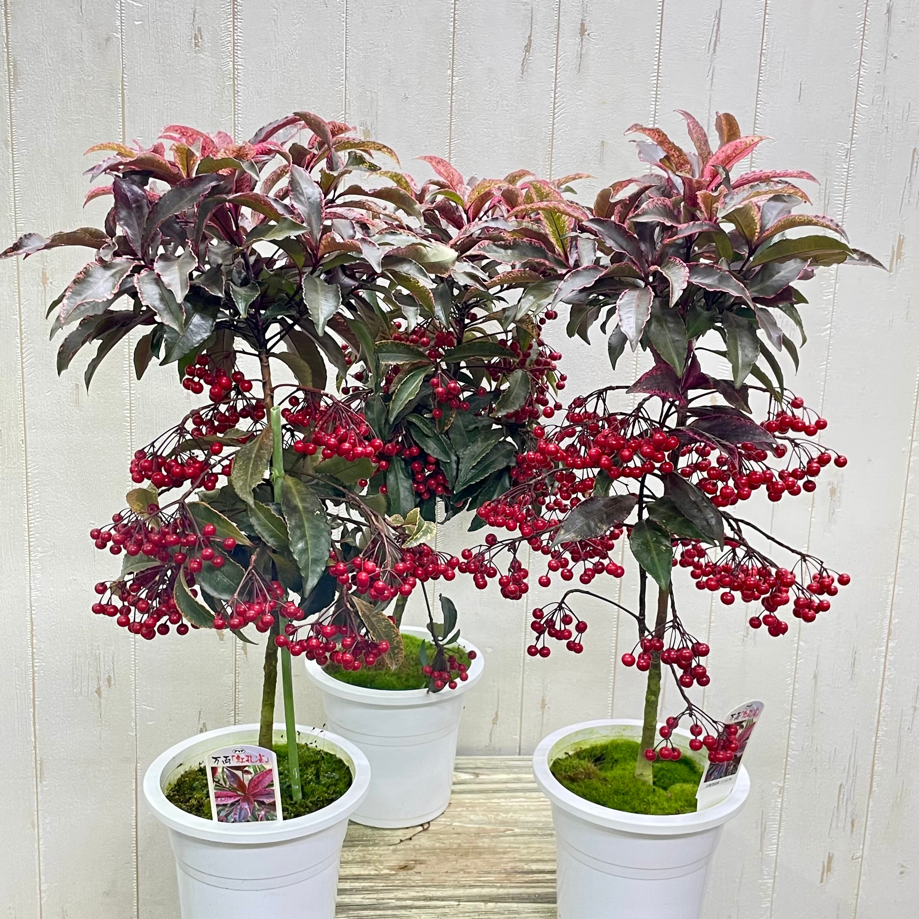 紅孔雀 万両 5号|ピンク斑入り葉×赤い実が可愛い希少品種|50-60cm