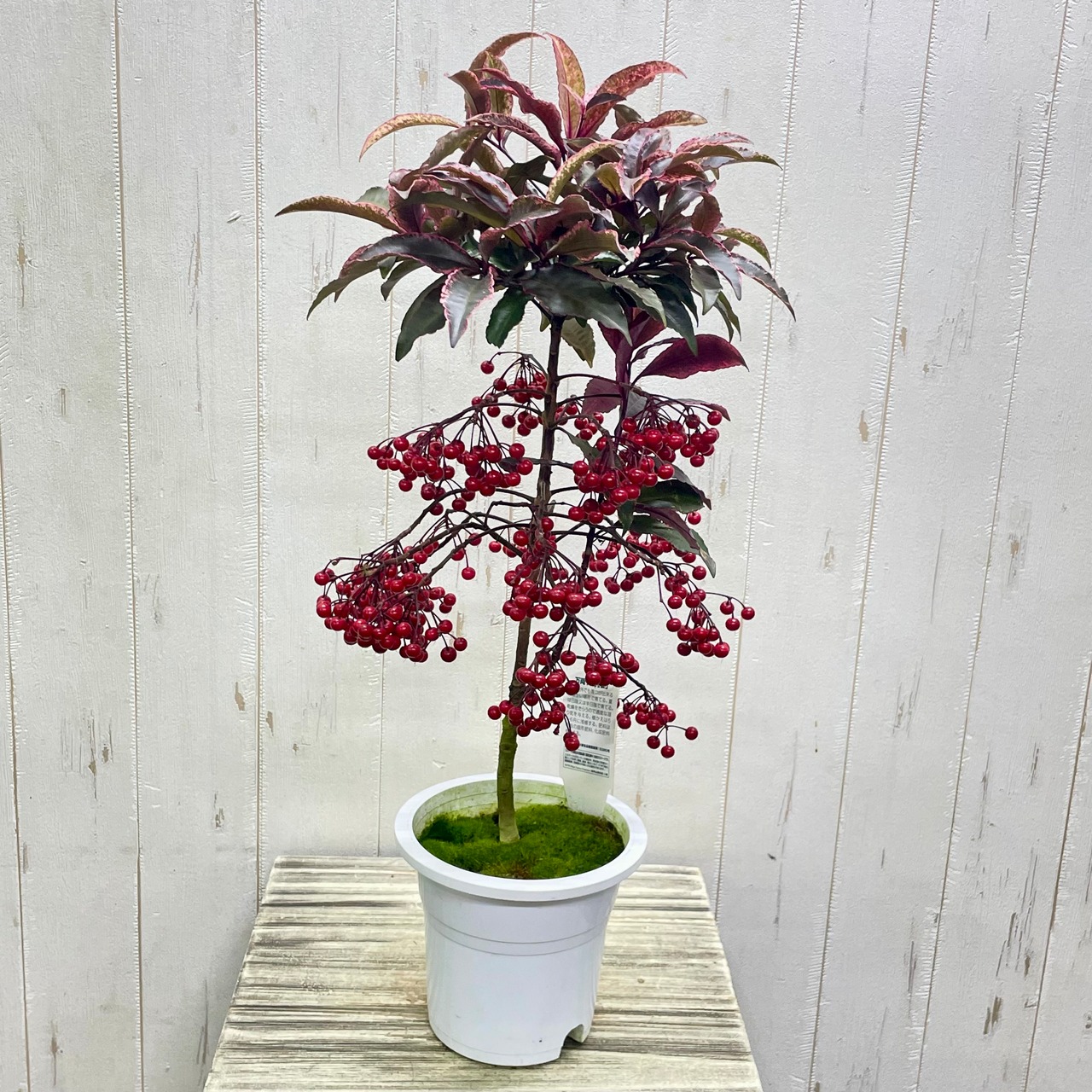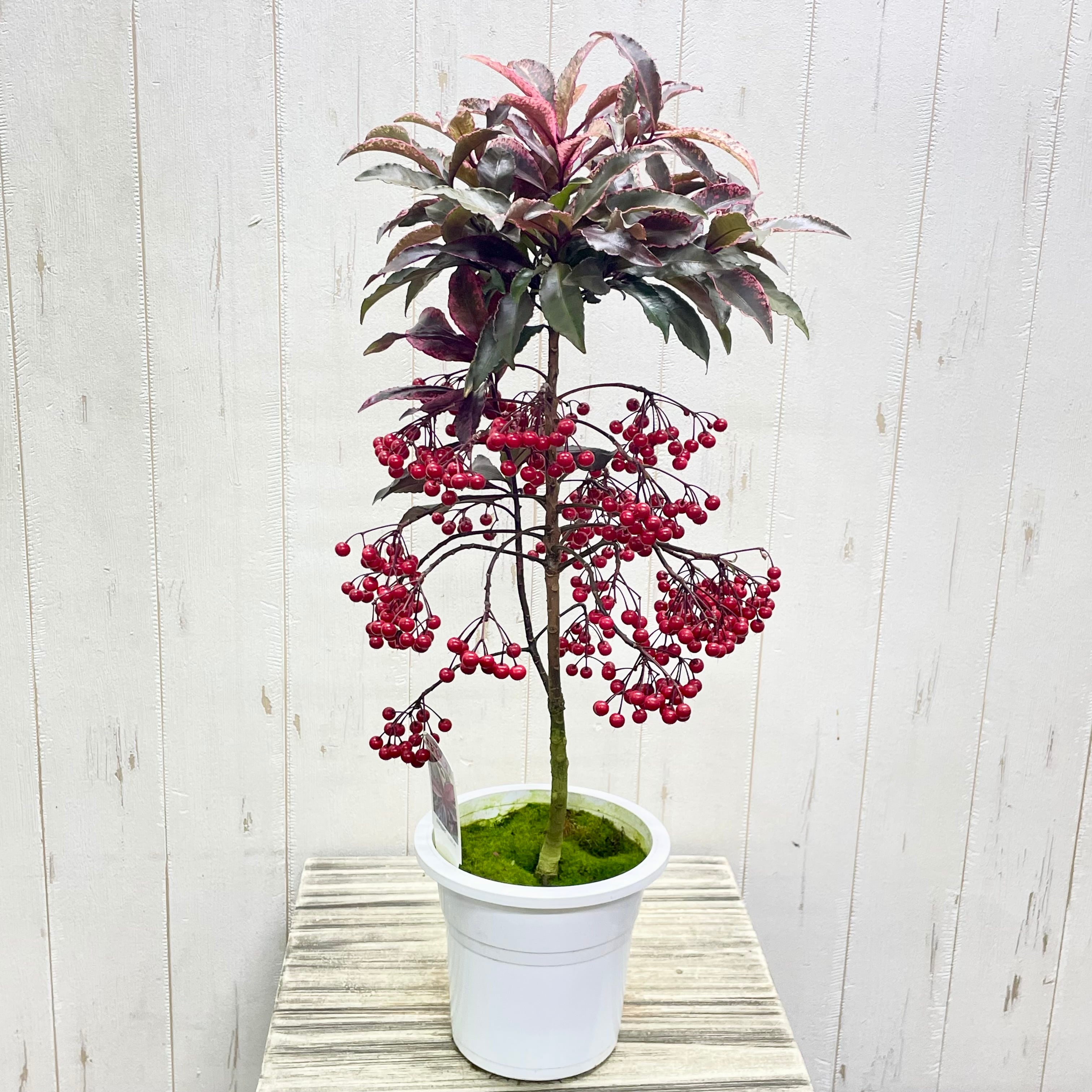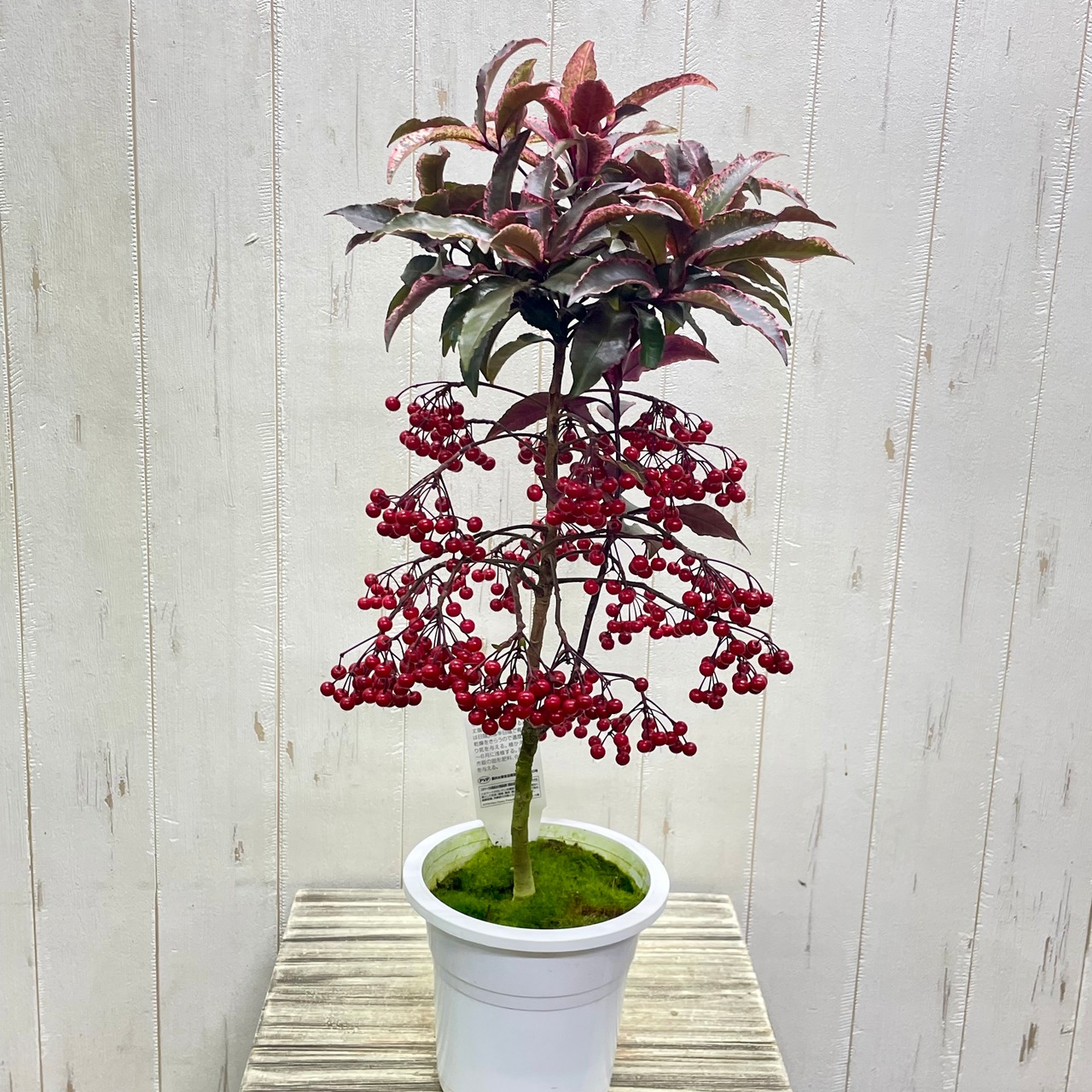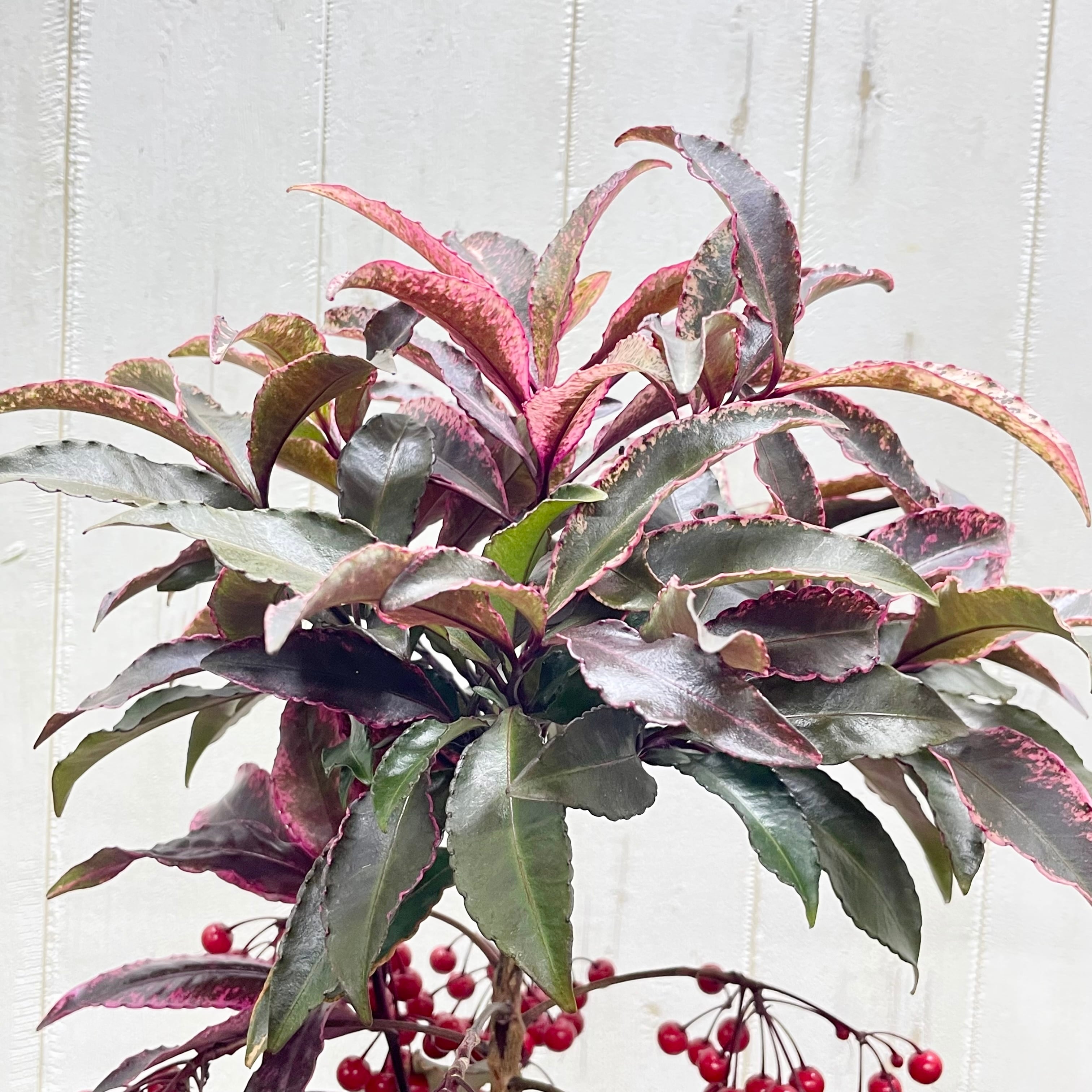 紅孔雀 万両 5号|ピンク斑入り葉×赤い実が可愛い希少品種|50-60cm