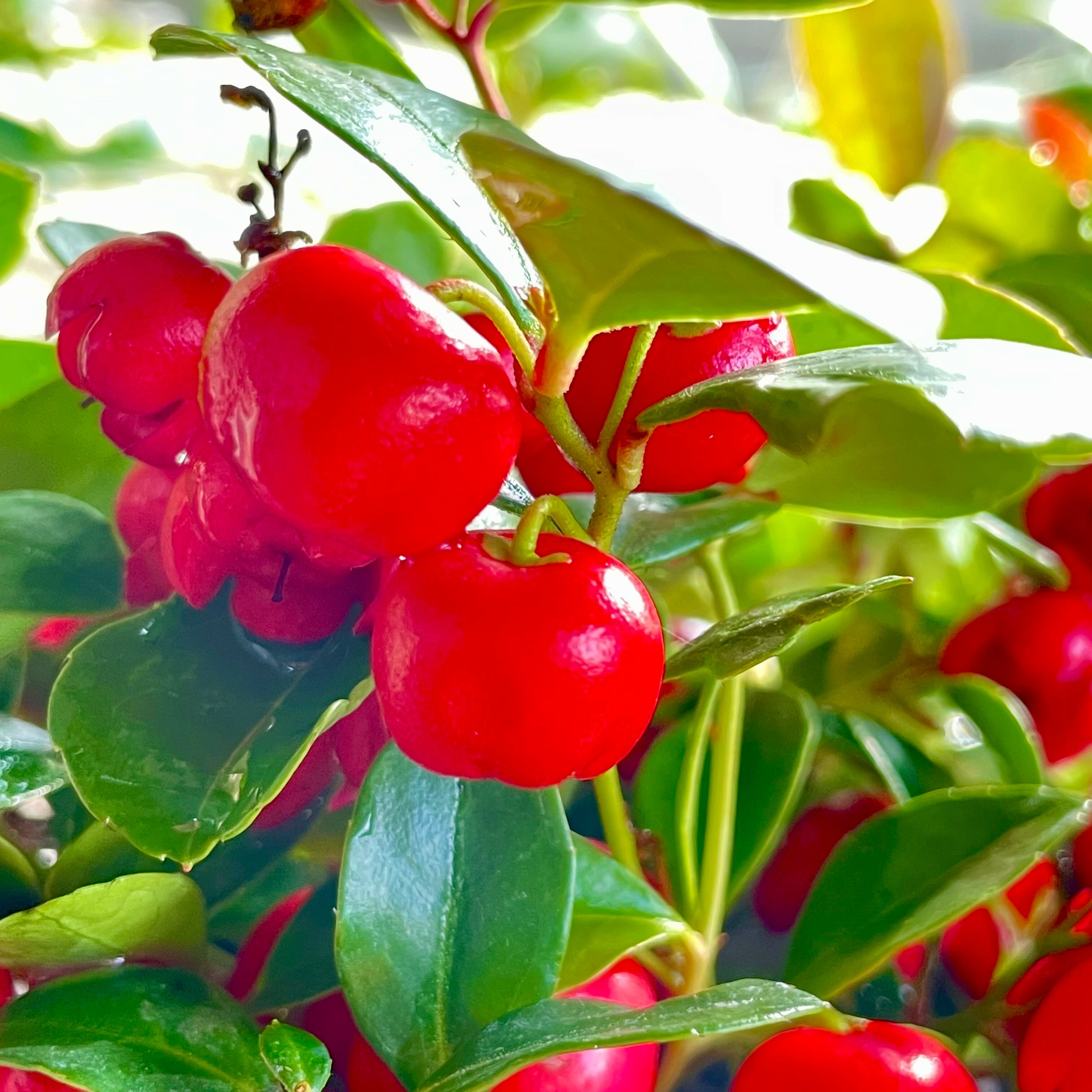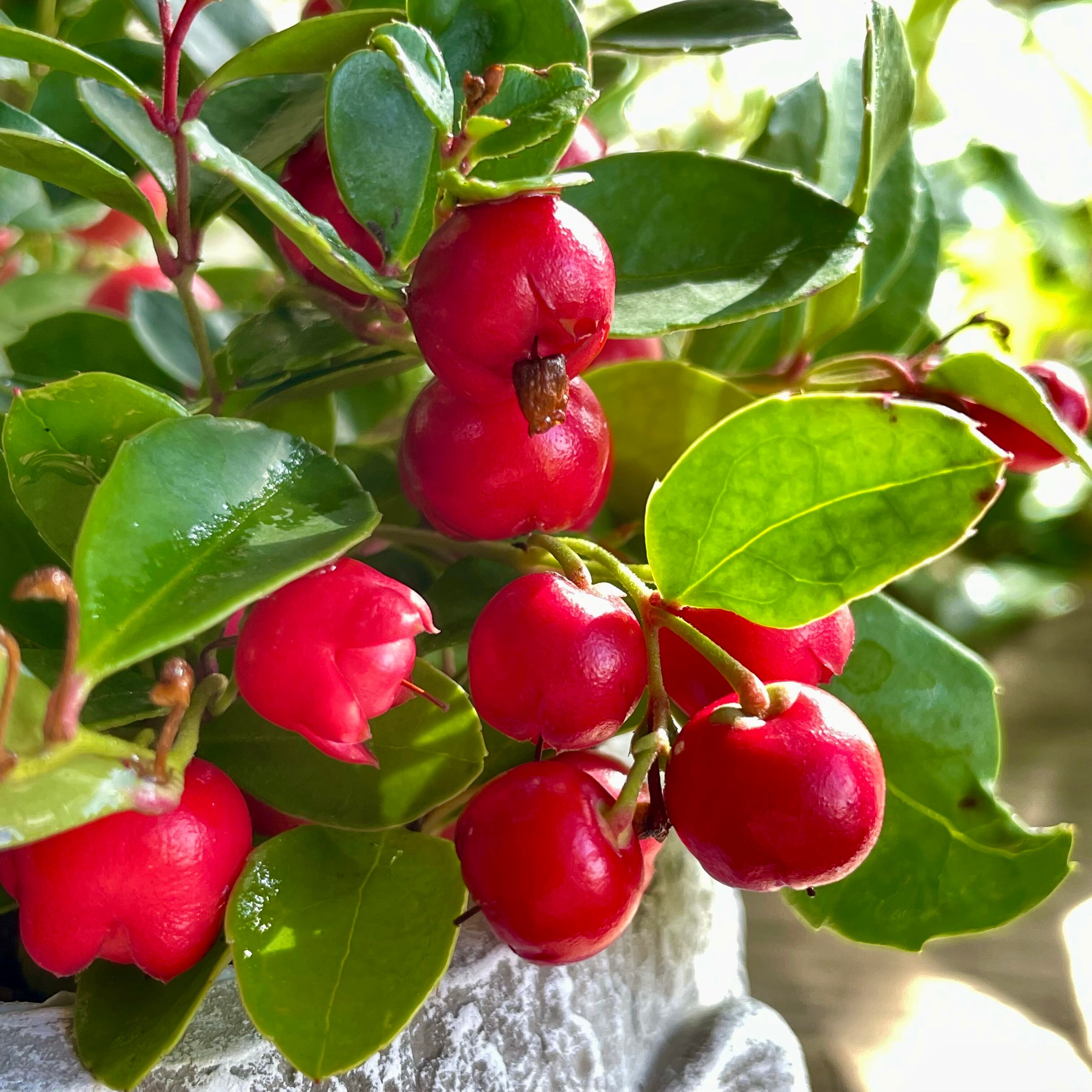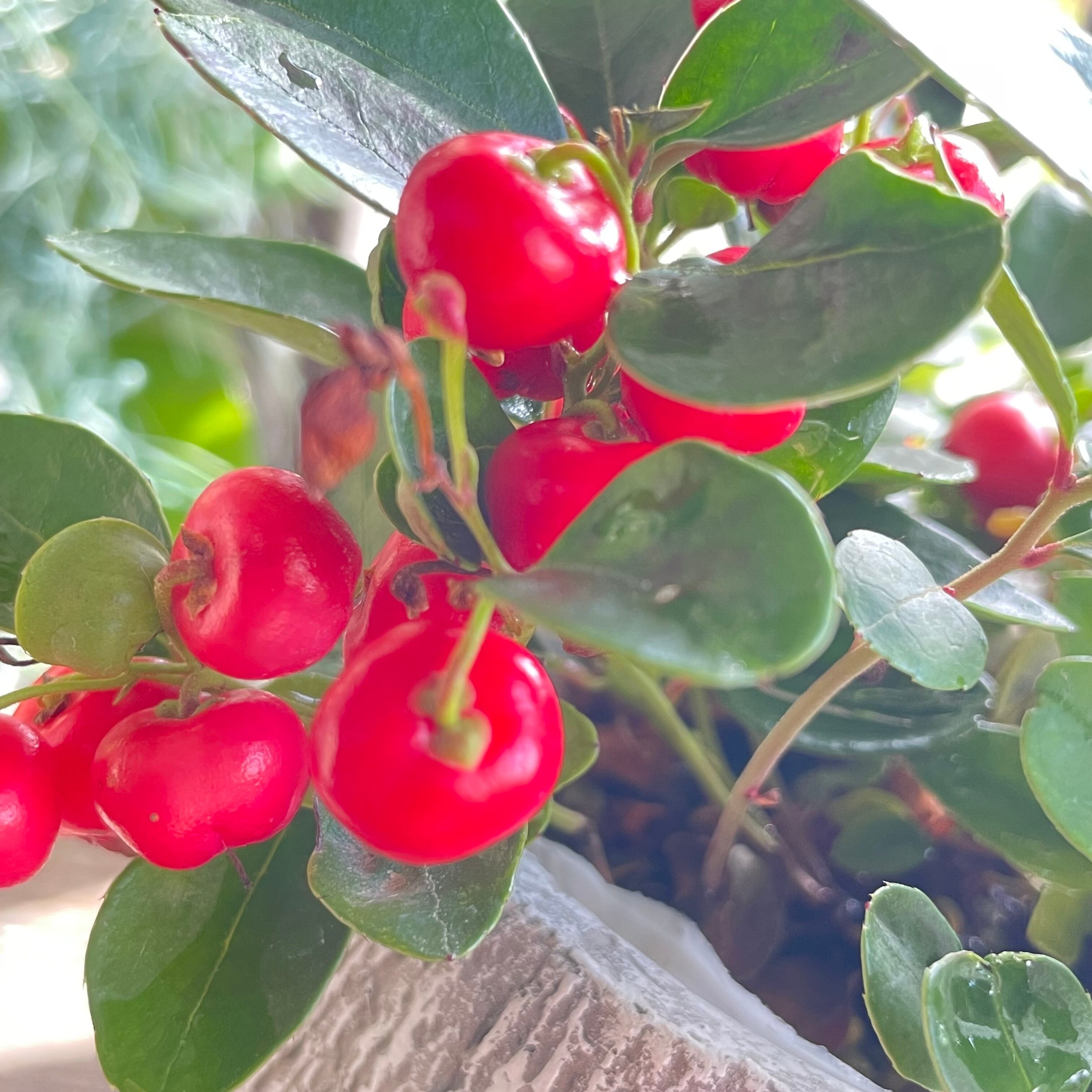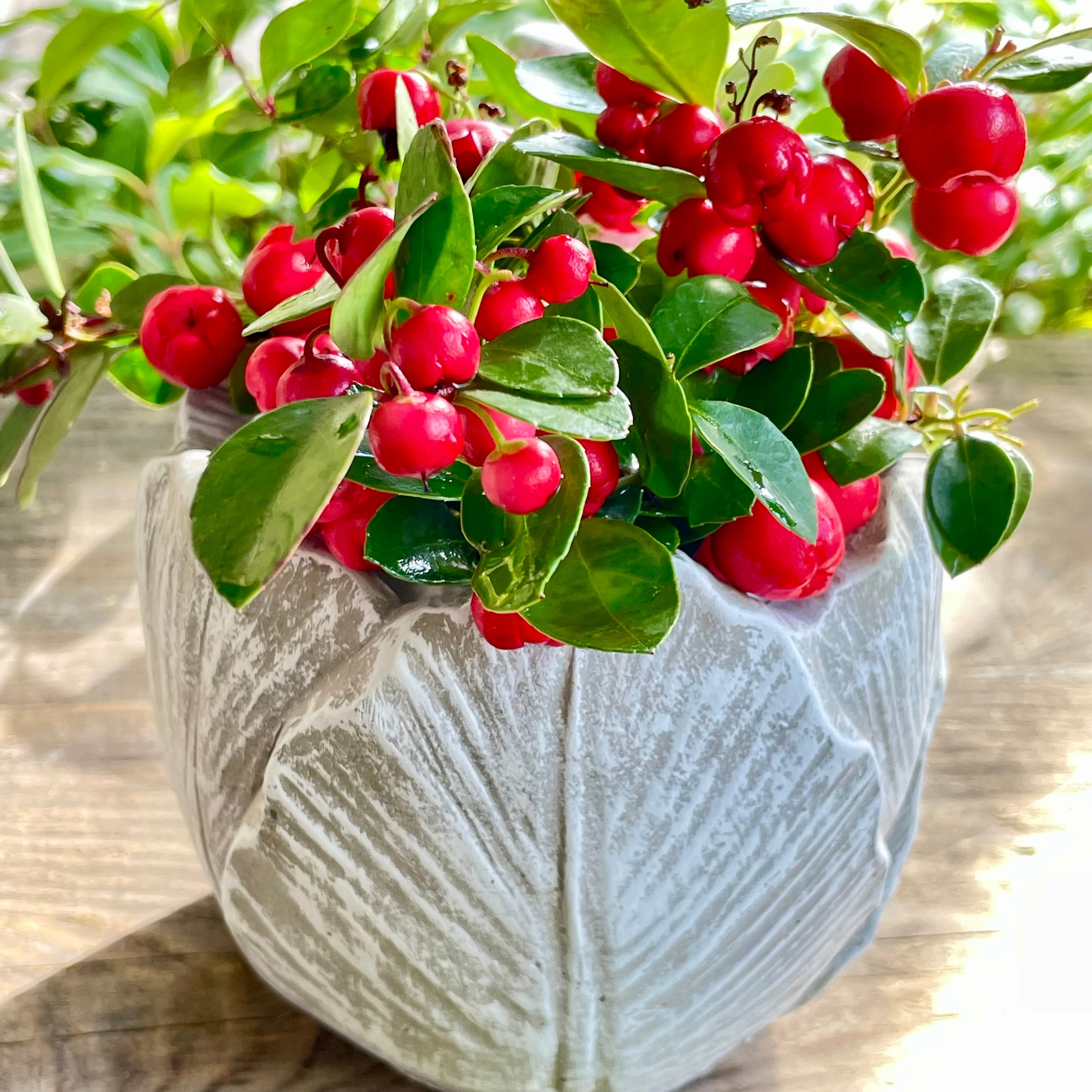 今回のチェッカーベリーは実が特に大粒で、華やかさがより一層引き立ちます。