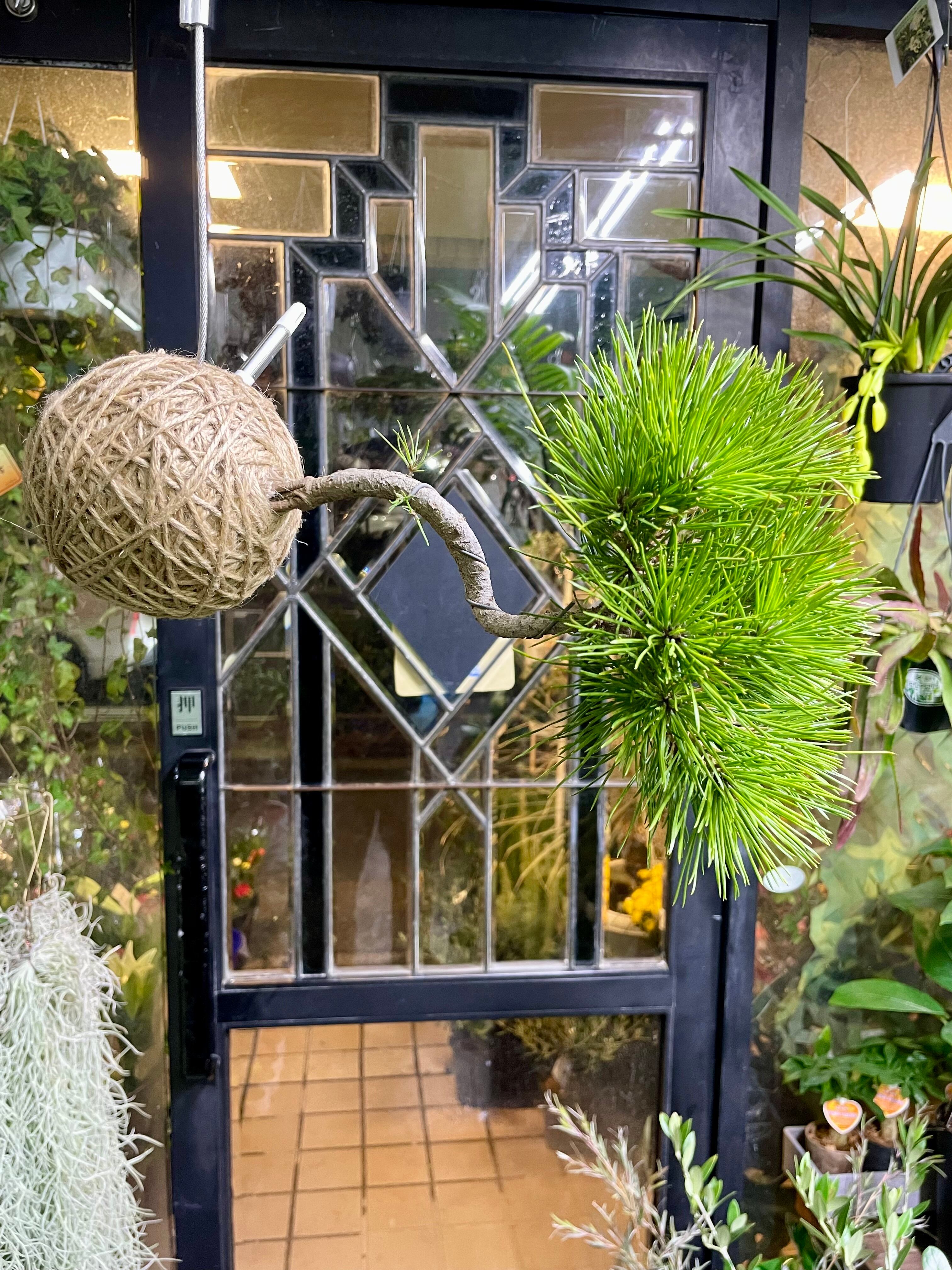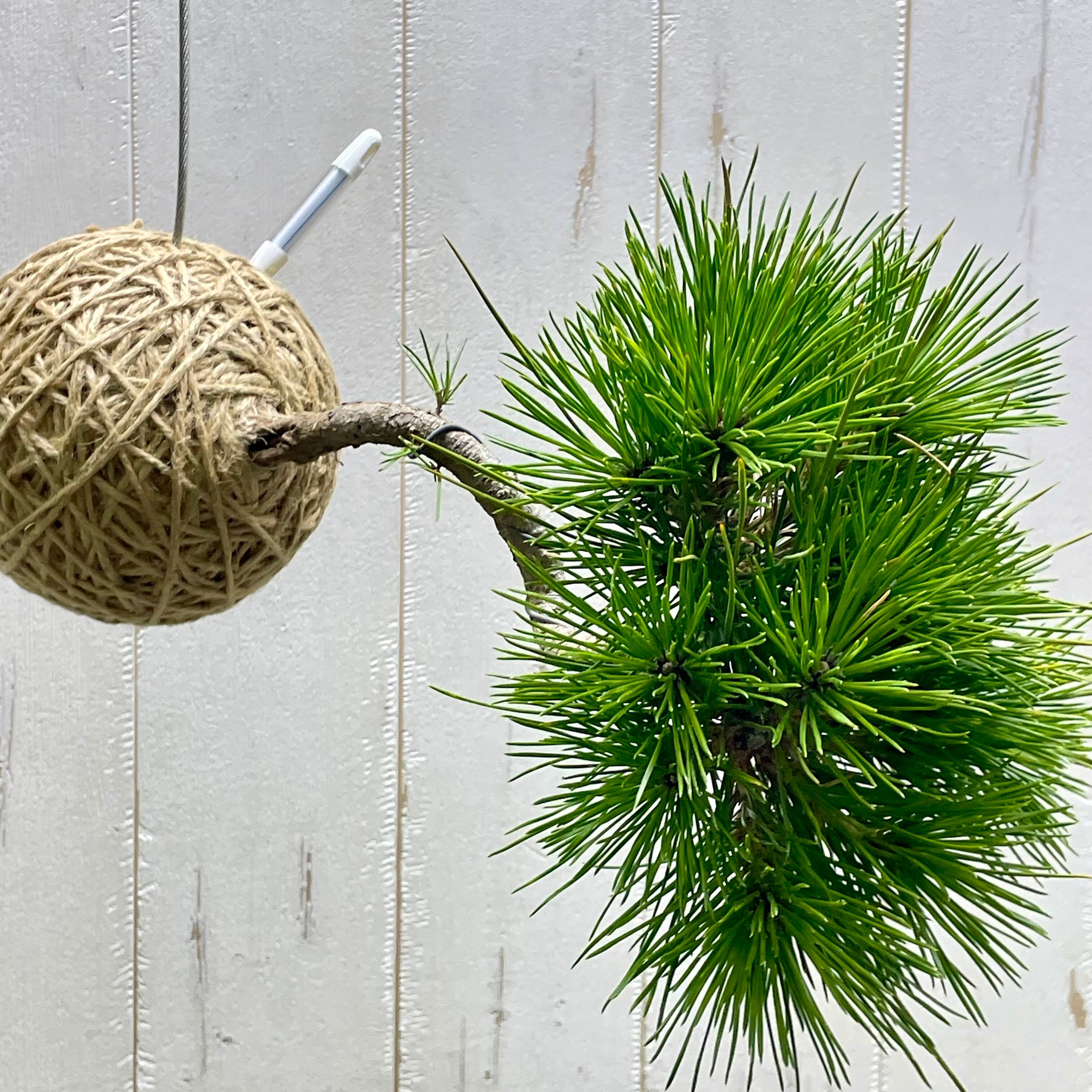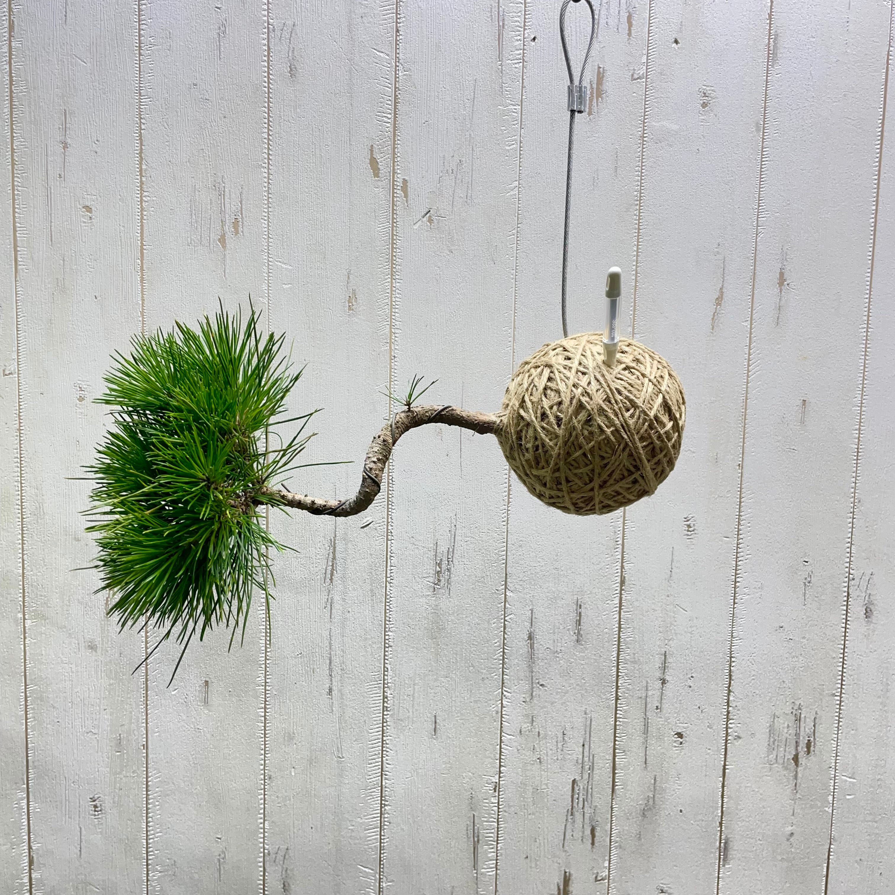 盆栽松 麻玉ハンギング 水位計付き 吊るして楽しむ和モダングリーン