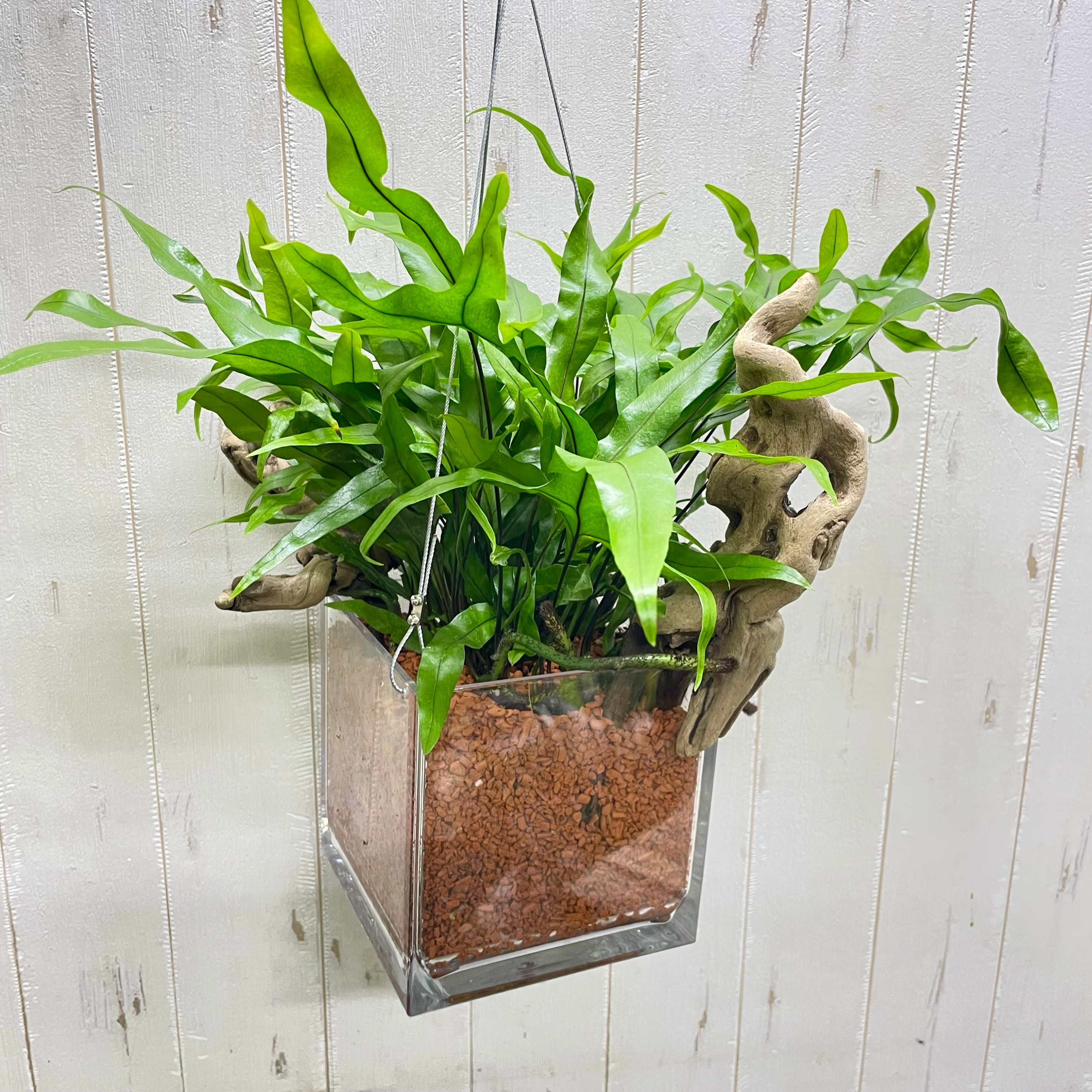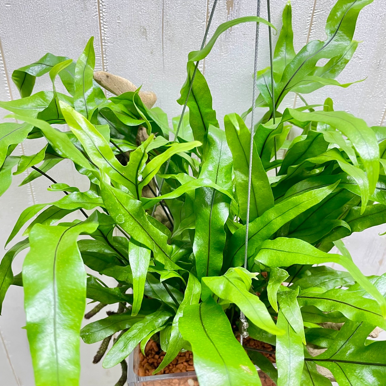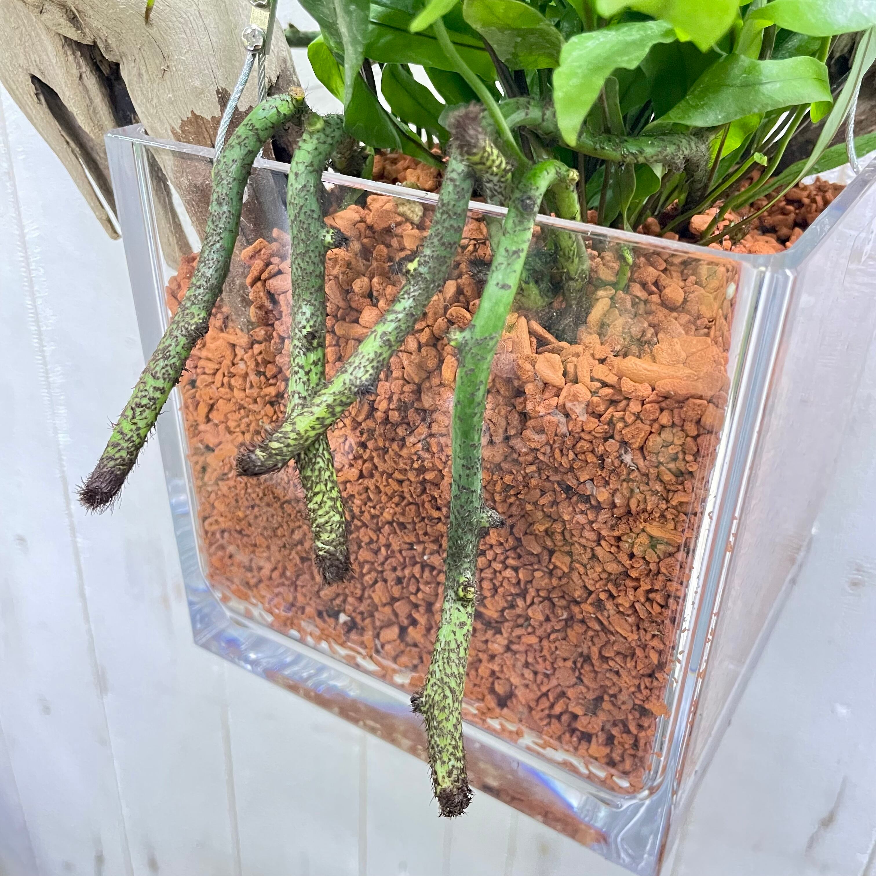 流木仕立て ミクロソリウム・カンガルーファン ワイヤーハンギング セラミス植え
