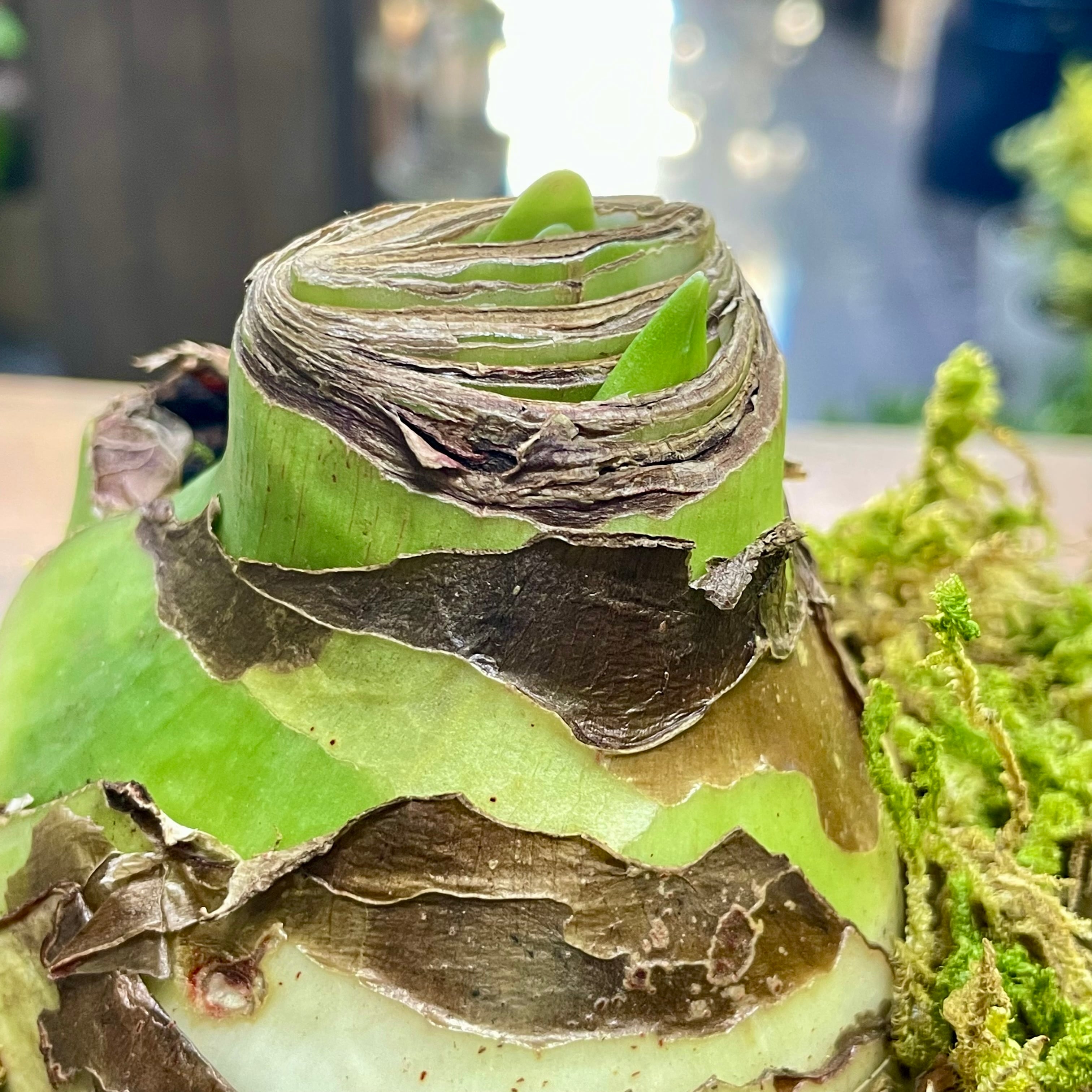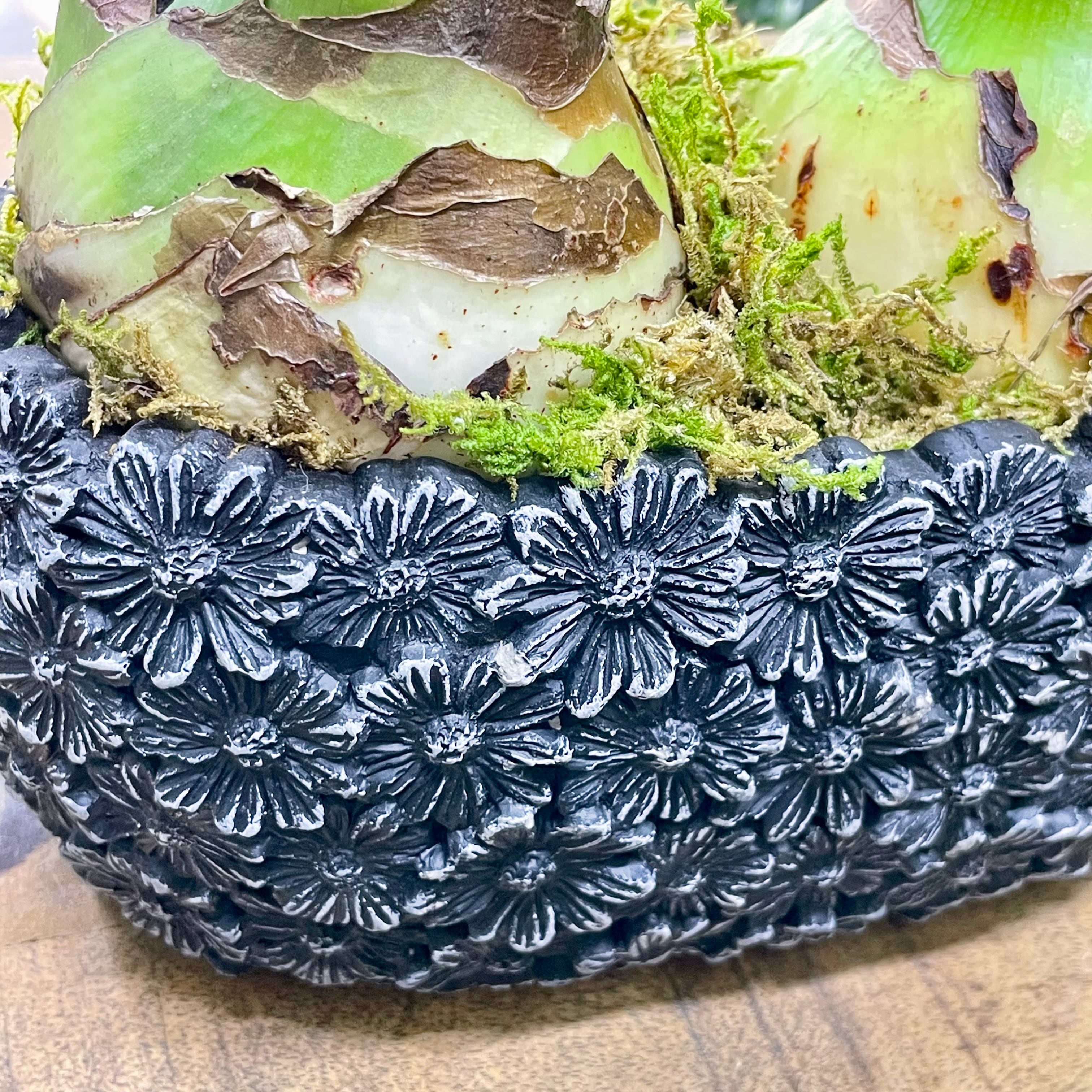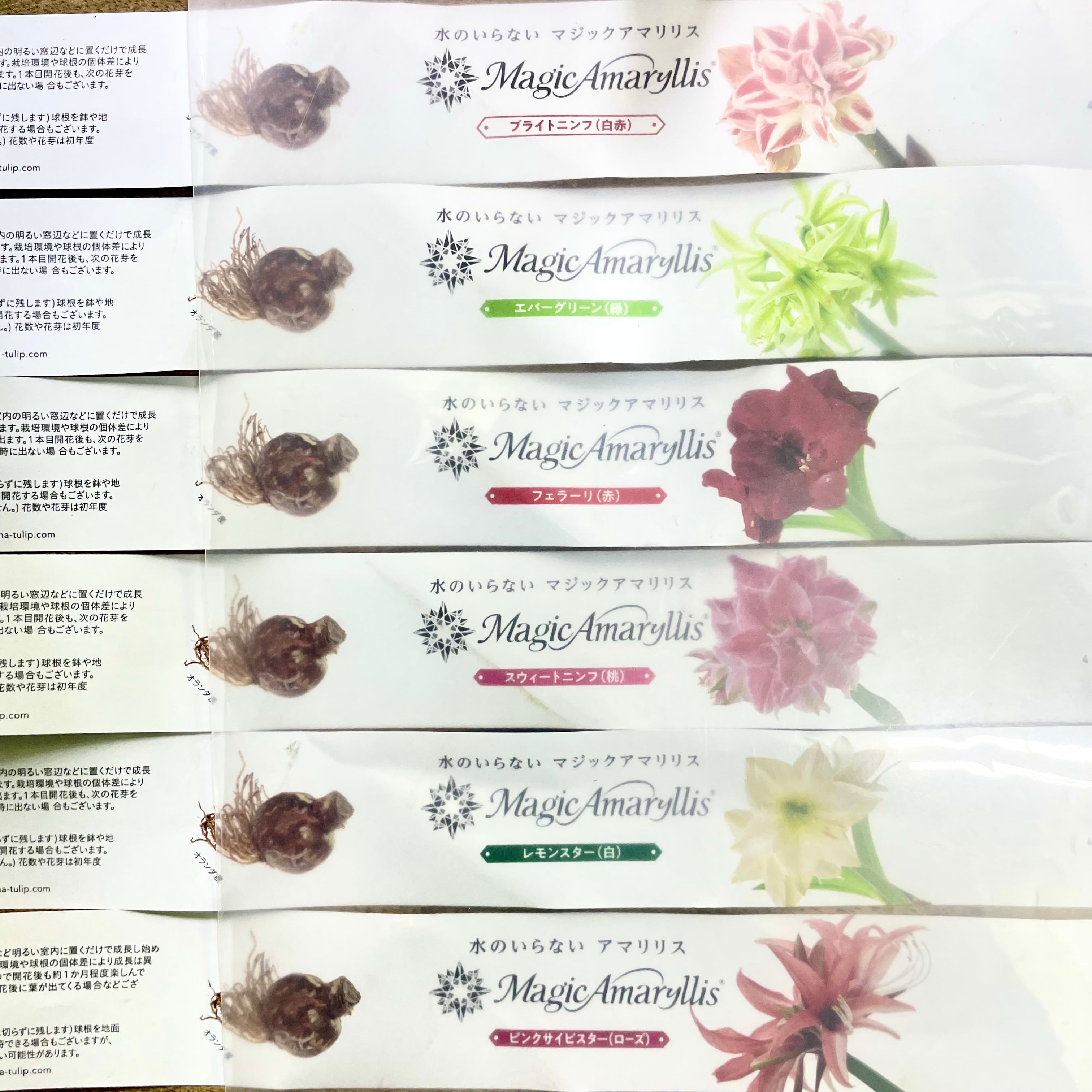 土も、水やりもいらない。 ただ置いておくだけなのに、 ある日ふと気づくと、ぐっと背を伸ばし、花芽を抱えています。 忙しい毎日の中で、手をかけすぎなくても、ちゃんと応えてくれる。 そんな安心感が、この「マジックアマリリス」のいちばんの魅力です。 マジックアマリリスは、球根そのものの力で花を咲かせる特別な植物。 土を使わず、水も与えずに育てることができ、 暖かい室内の明るい窓辺などに置くだけで、成長を始めます。 今回ご用意したのは、 2球を寄せて、落ち着いたブラックのセメント鉢に仕立てたアレンジ。 苔をあしらったナチュラルな仕上がりで、 置くだけで空間に静かな季節感を添えてくれます。 球根はおよそ6〜10週間ほどで開花します。 花芽は2〜3本出ることが多く、 開花後も次の花芽が上がってくる場合があります。 (※成長の仕方や花芽の本数は、栽培環境や球根の個体差によって異なります) 色合いは、 レモンスター(白)/スウィートニンフ(桃)/ピンクサイビスター(ローズ) エバーグリーン(緑)/ブライトニンフ(白赤)/フェラーリ(赤) などの中から、必ず2色ミックスでのお届けとなります。 並びや色の組み合わせによって、ひとつひとつ表情が異なるのも魅力です。 ⸻ 育て方について ・水やりは必要ありません ・直射日光を避けた、明るい室内に置いてください ・寒すぎる場所や、エアコンの風が直接当たる場所は避けてください 「今日はどうかな」と気にかけるのは、 気温や置き場所だけで十分です。 無理に触らず、そっと見守ることで、 球根本来の美しさが引き出されます。 ⸻ 花が終わった後の管理 花が終わった後は、 花茎のみを根元からカットし、葉は切らずに残してください。 その後、球根を鉢や地面に植え付けて育てることで、 翌年以降に再び開花する場合があります (※翌年の開花を保証するものではありません)。 なお、花数や花芽の本数は、 初年度より少なくなる可能性があります。 「育てて楽しむ」工程も含めて、 長く付き合っていただけたら嬉しいです。 ⸻ サイズ ・全体高さ:約15cm(セメント鉢底〜球根先端まで) ・球根幅:1球 約10cm ・鉢サイズ:外寸 約W215 × D130 × H95mm ・鉢内寸:約W185 × D100mm (ブラック セメント鉢) 棚の一角や、ダイニングカウンター、ベッドサイドにも置きやすく、 ふと視線を向けたときに、季節の移ろいを感じさせてくれるサイズ感です。 ⸻ ※球根・植物のため個体差がございます。 ※日々成長していますので、画像の状態と異なる場合がございます。 ※球根の配色は、基本的にお任せになりますが、必ず2色ミックスでお届けになります。 ご希望がある場合は、購入前にご連絡をいただくか、備考欄に記載してください。 在庫状況によりご希望に添えない場合がございますので、予めご了承ください。