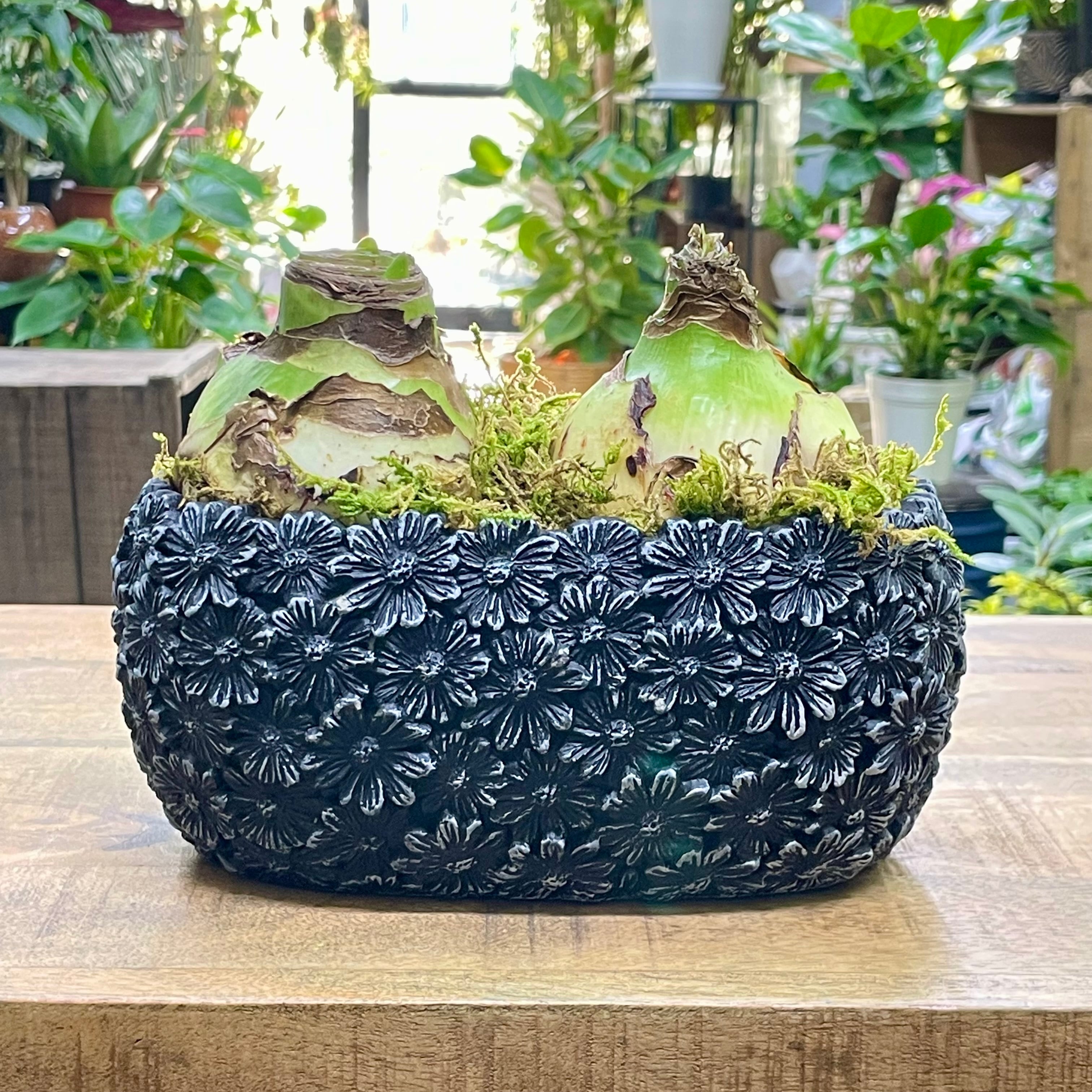 土も水もいらない マジックアマリリス 2球寄せ ブラックセメント鉢仕立て|置くだけで花が咲く 冬のインテリア