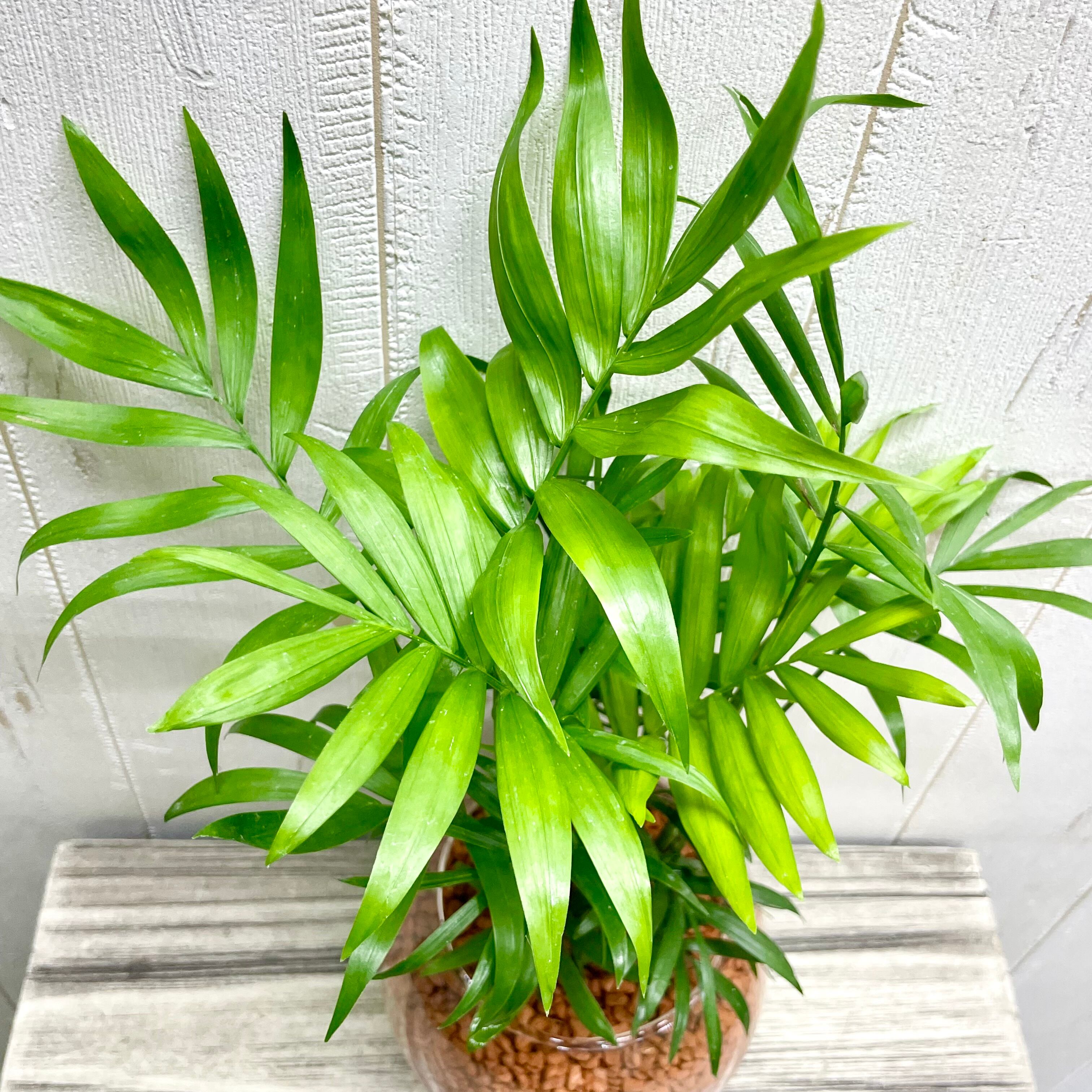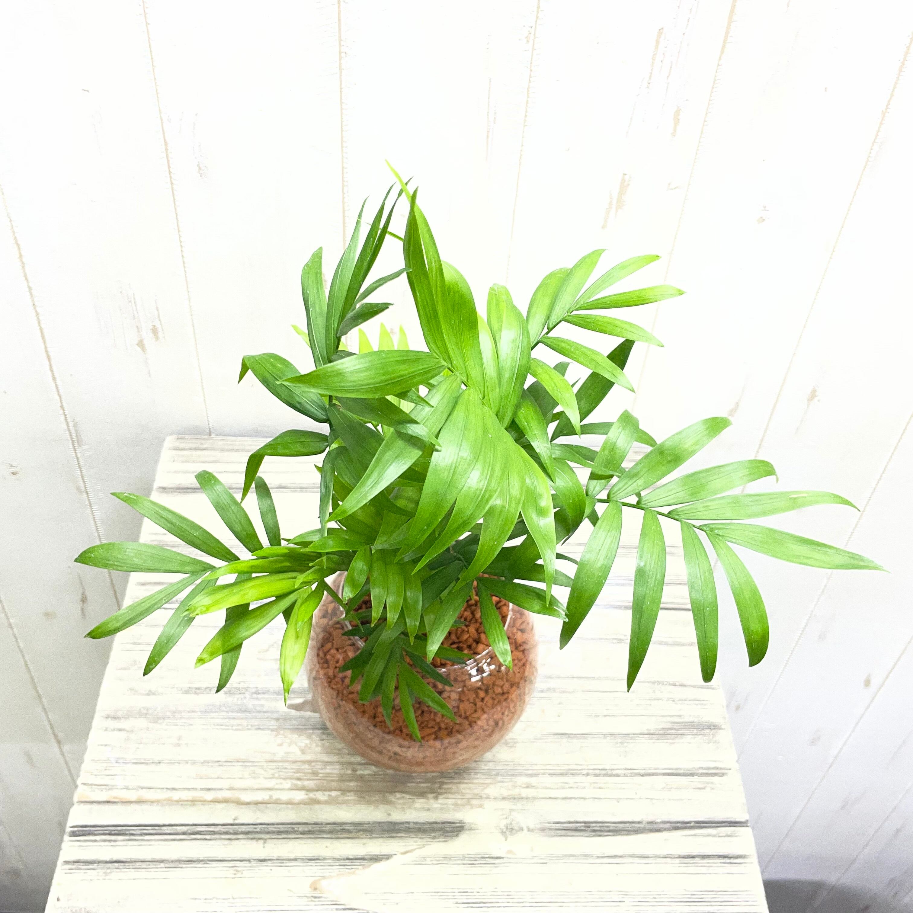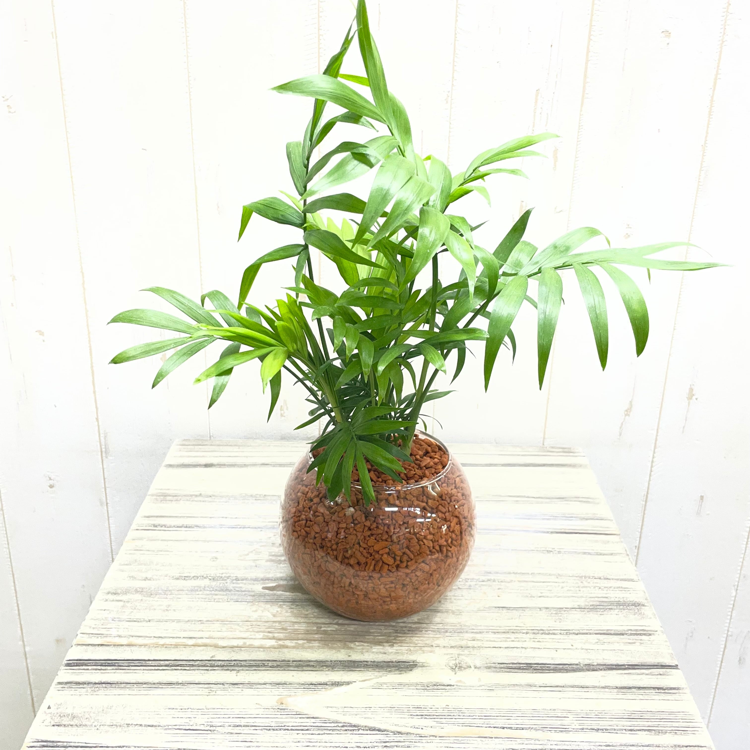 テーブルヤシ|ハイドロカルチャー|セラミス植え|ラウンドガラス鉢|H25-28cm
