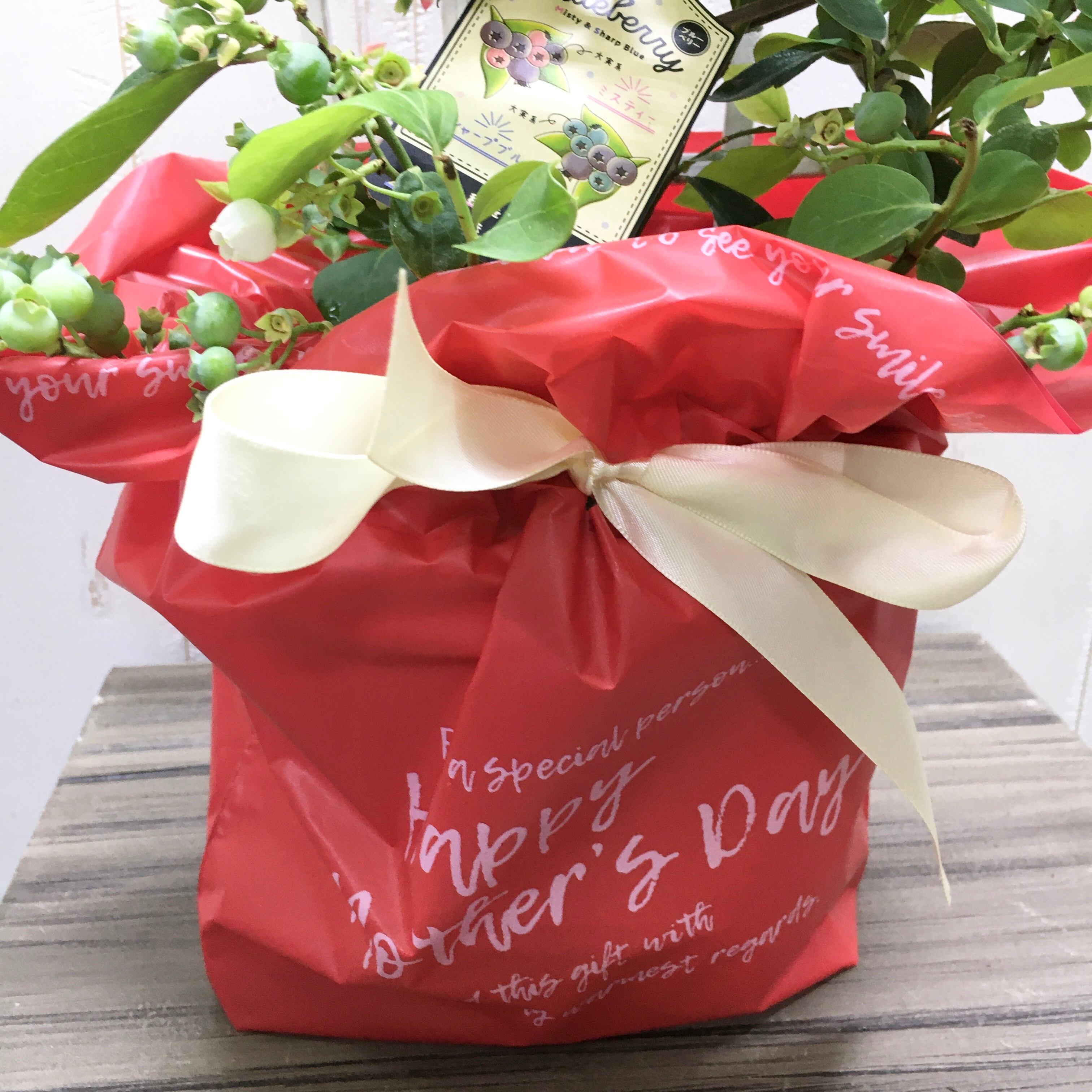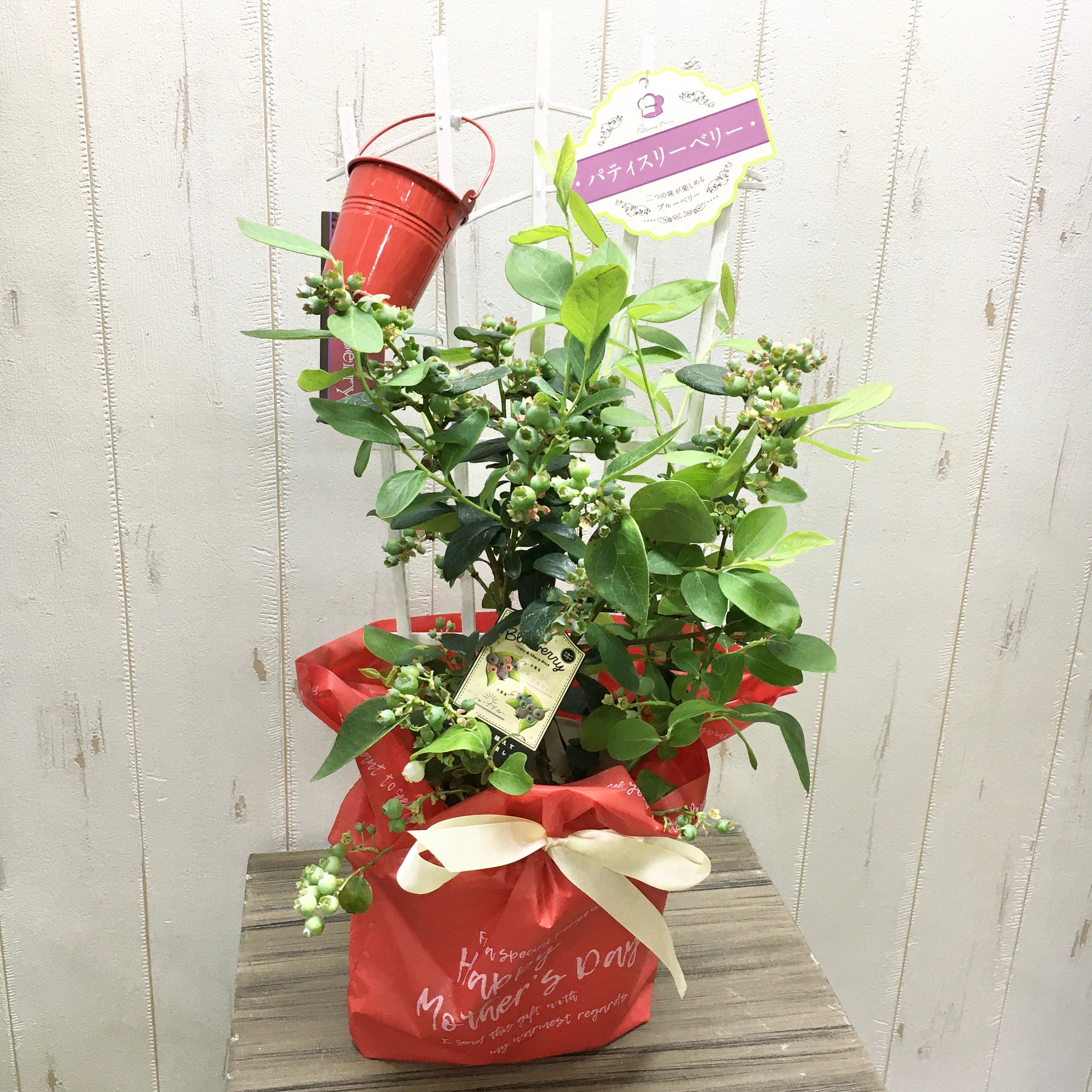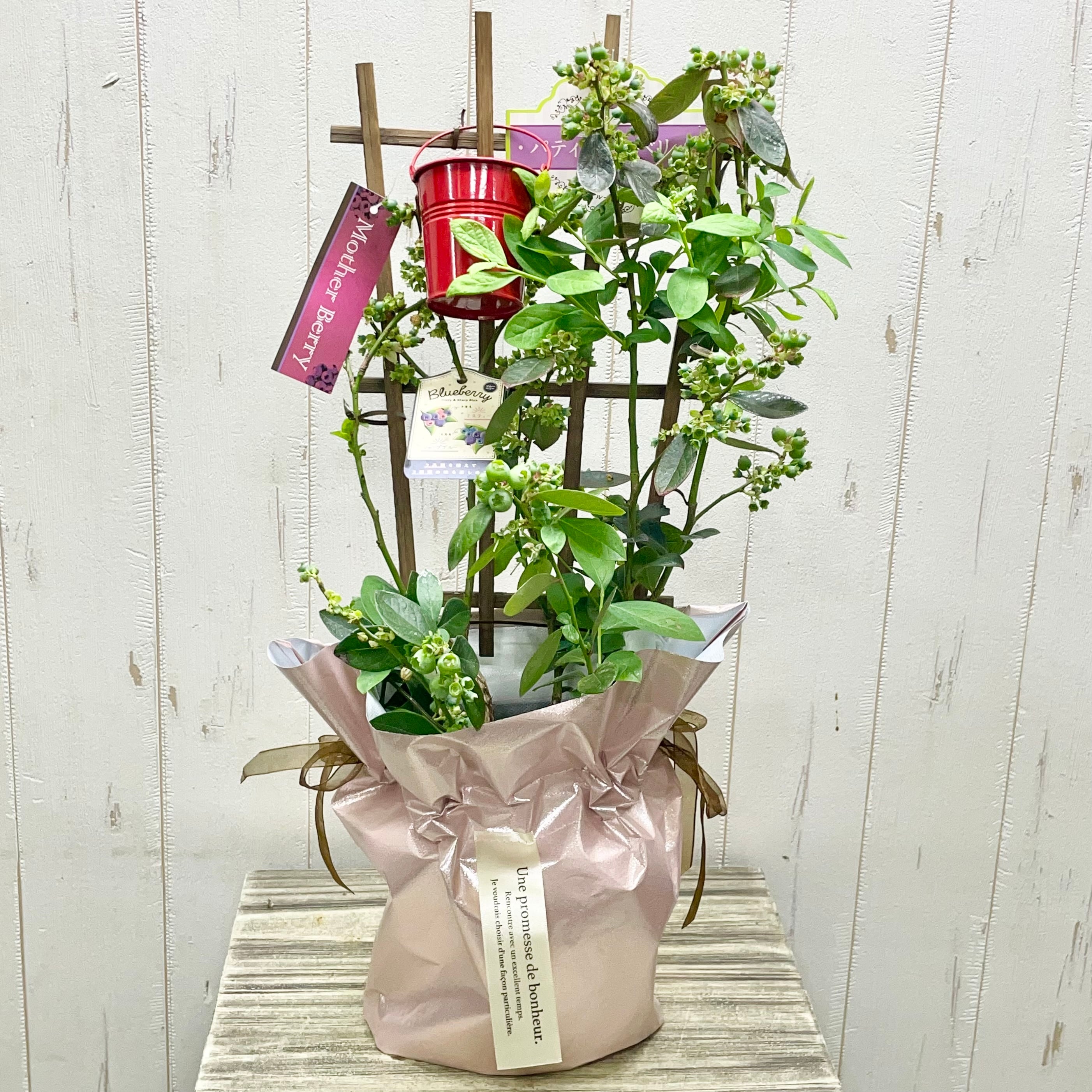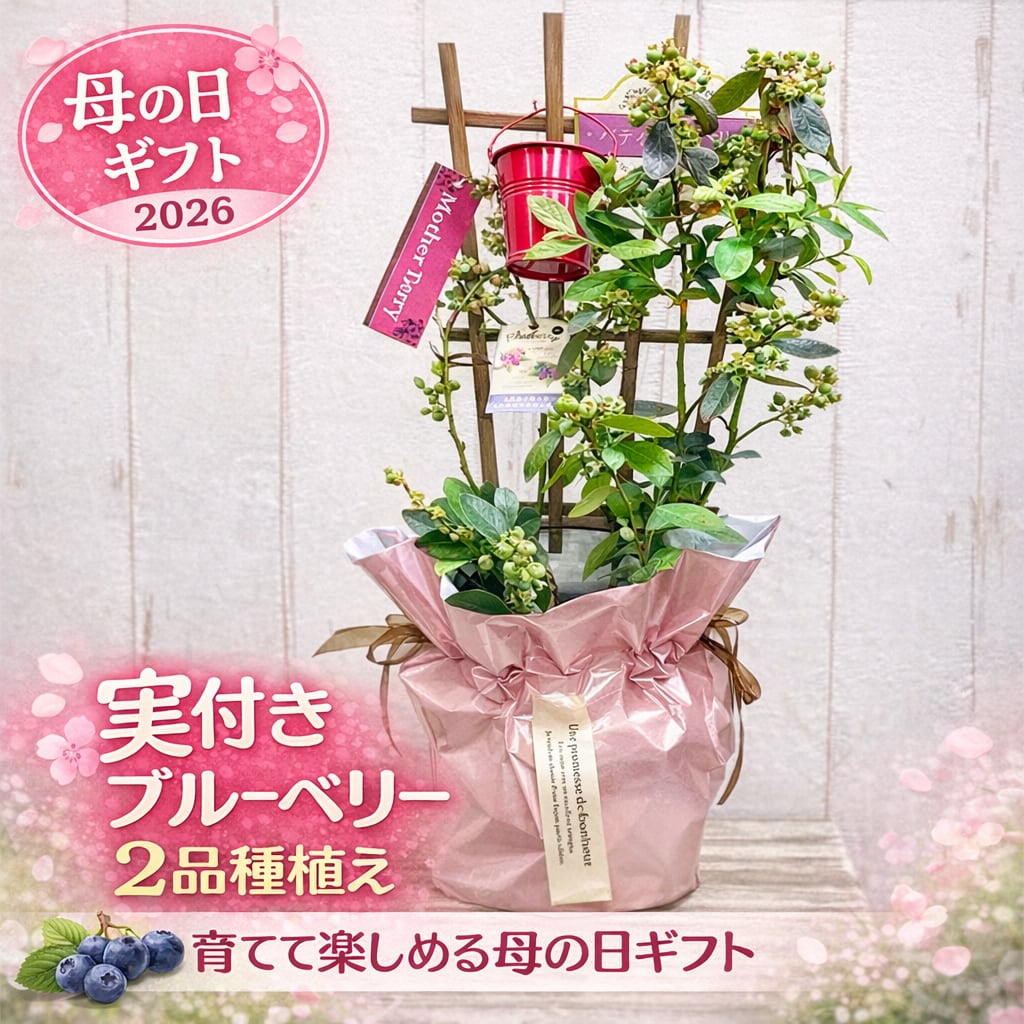 母の日早割|実付きブルーベリー2品種植え 5号鉢 ラッピング付き 育てて楽しむ母の日ギフト