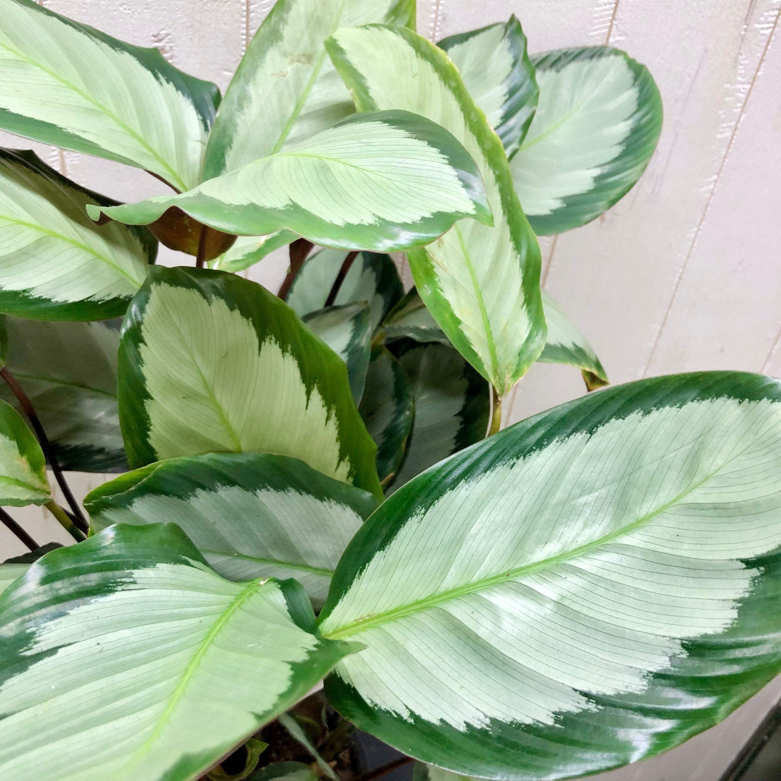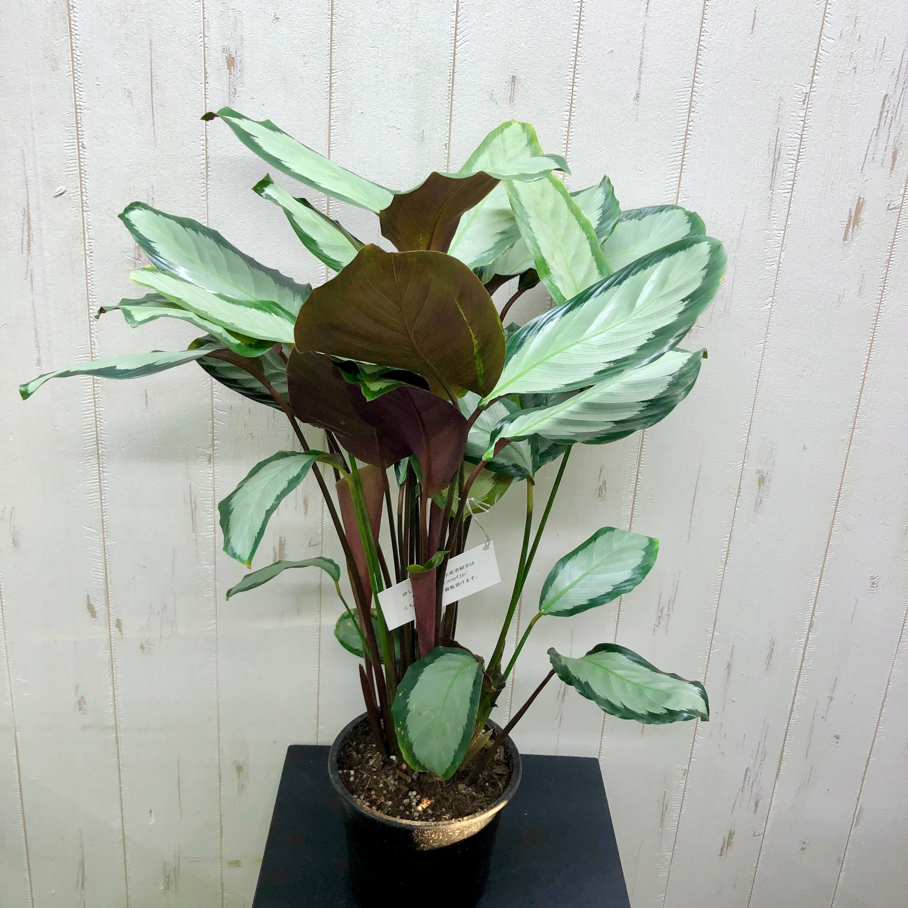 銀白色の斑が中央にサイドも深緑色でカラテアの中でも落ち着いた印象です。
