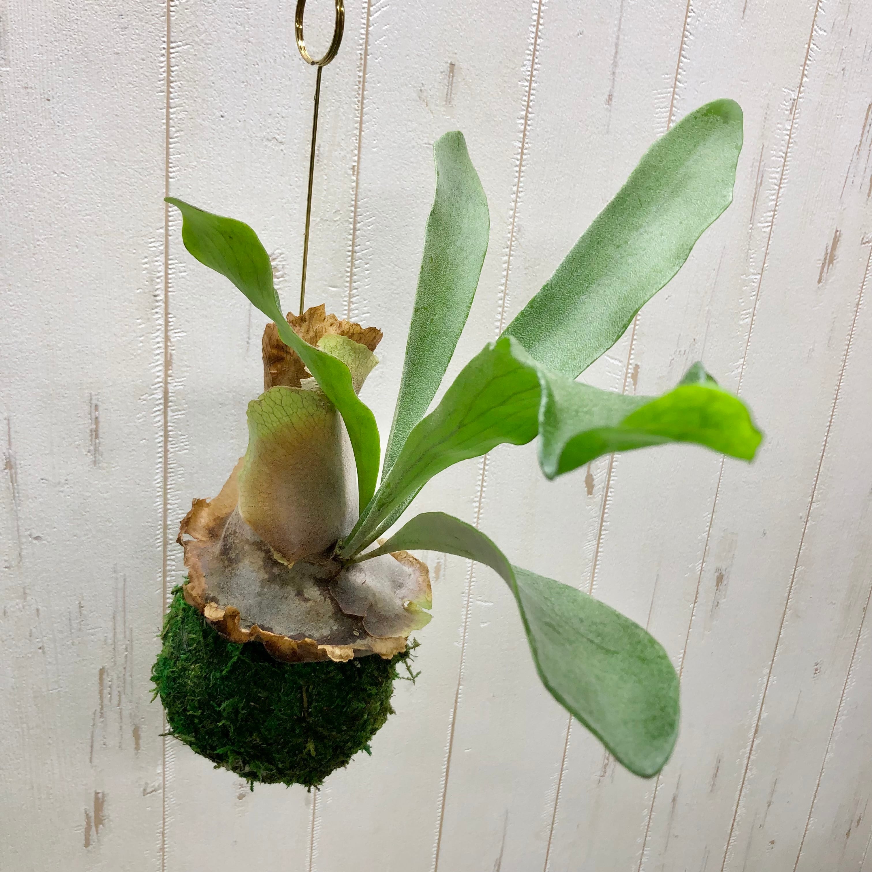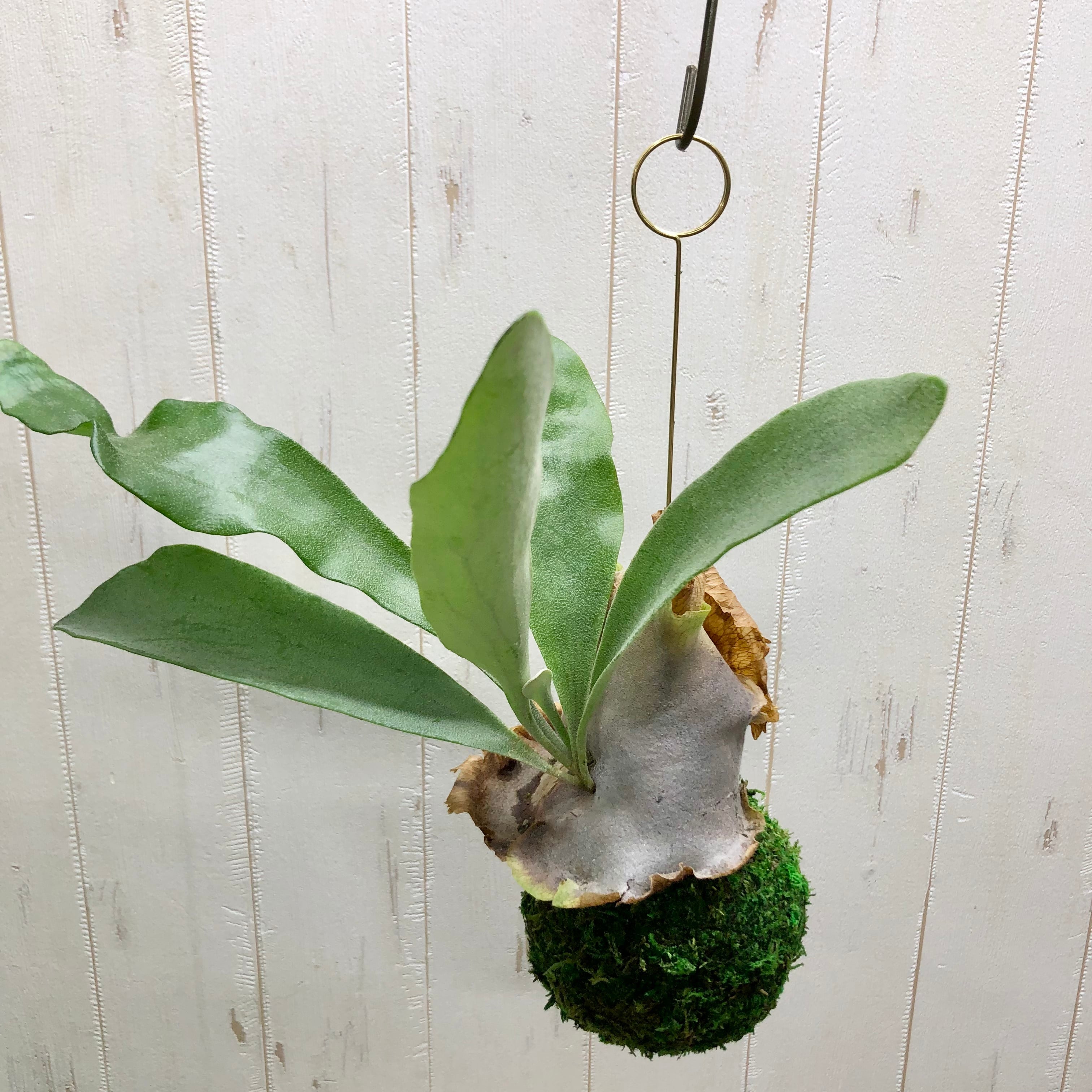 かわいい苔玉仕立てタイプのコウモリラン(ビカクシダ)です。