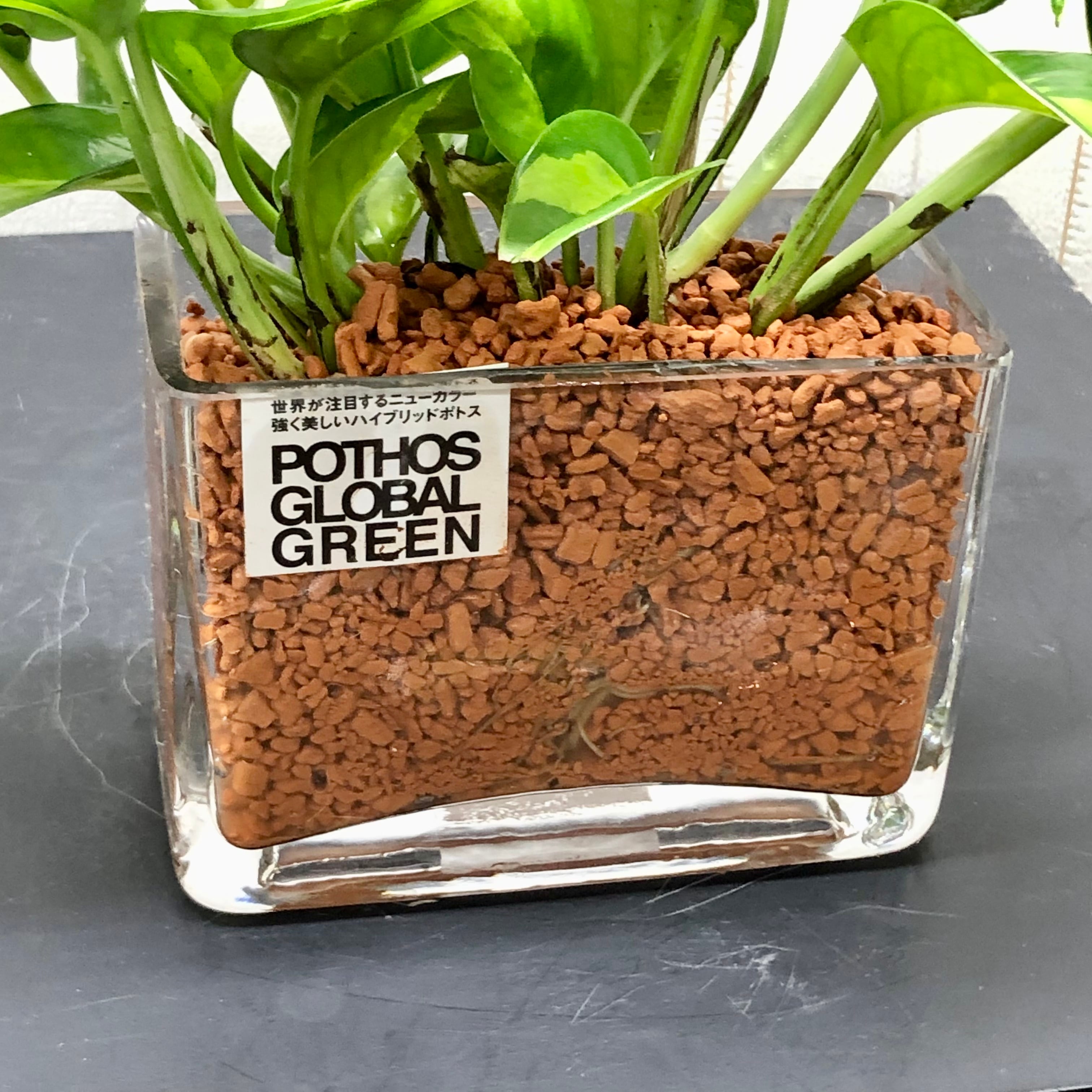 元気なグローバルグリーンの株を、セラミスという水栽培専用石で植え込んであります。