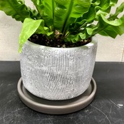 ホワイトポットに不規則な波のような傷を付け、最後にシルバー塗装を施してあります。浮き出た波模様がお楽しみいただけます。
