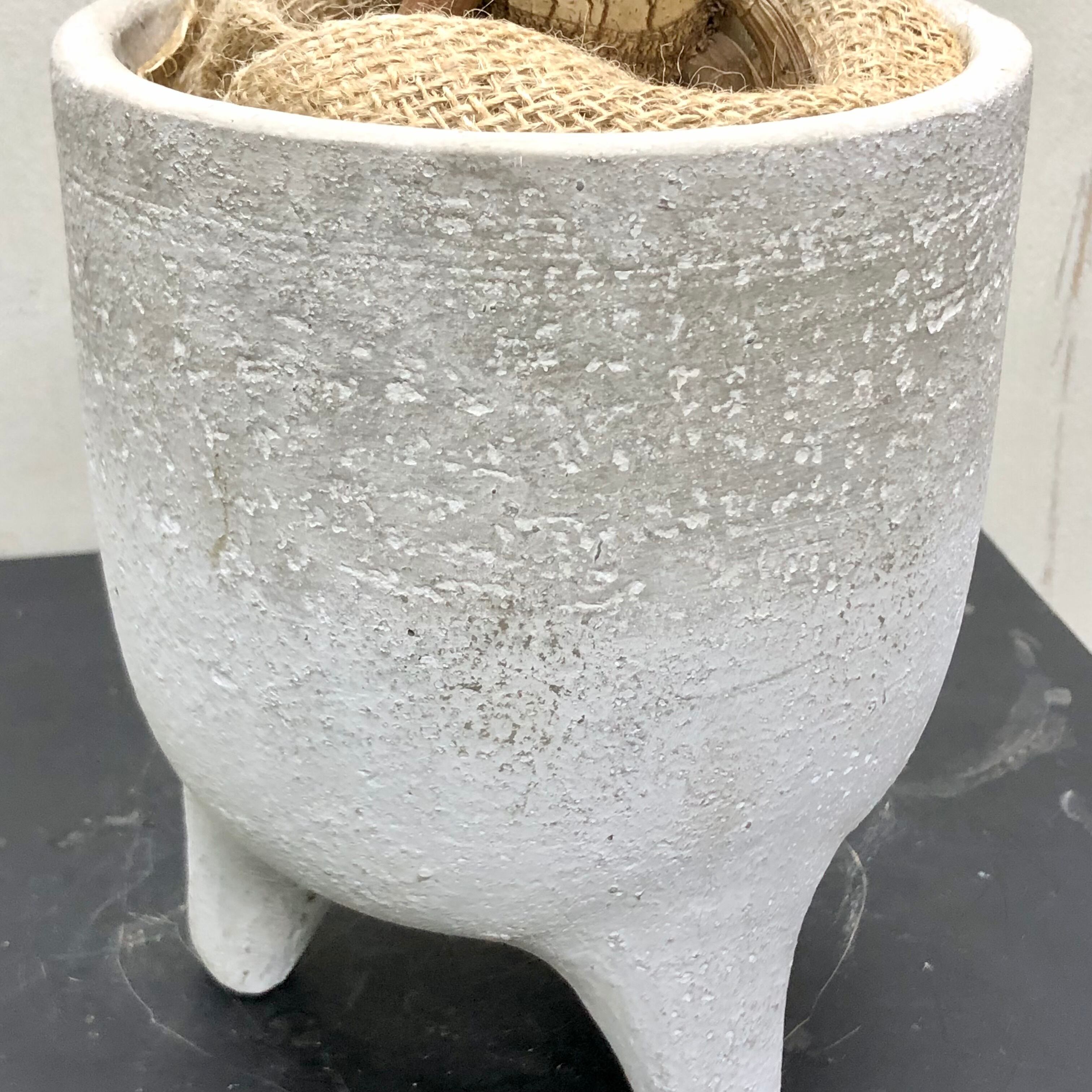 無機質なセメントポットにビニールポットごと入れてあります。(底穴無し)