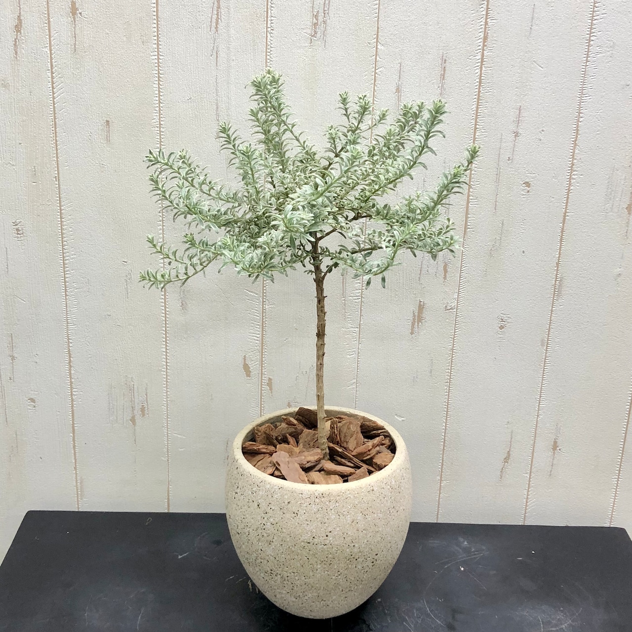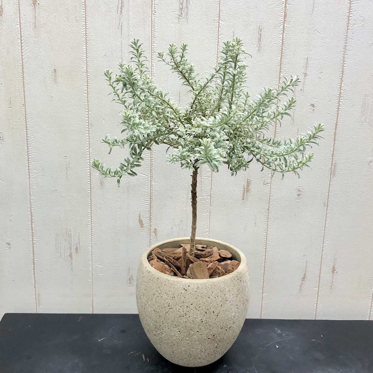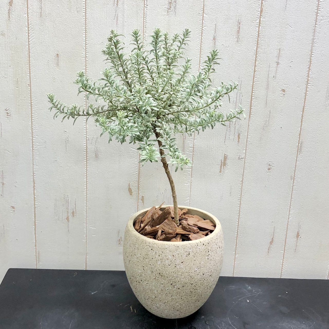 ウエストリンギア スモーキーホワイト トピアリー仕立て アンティークテラコッタ / カーキ