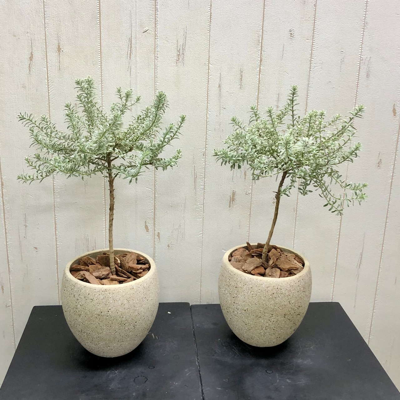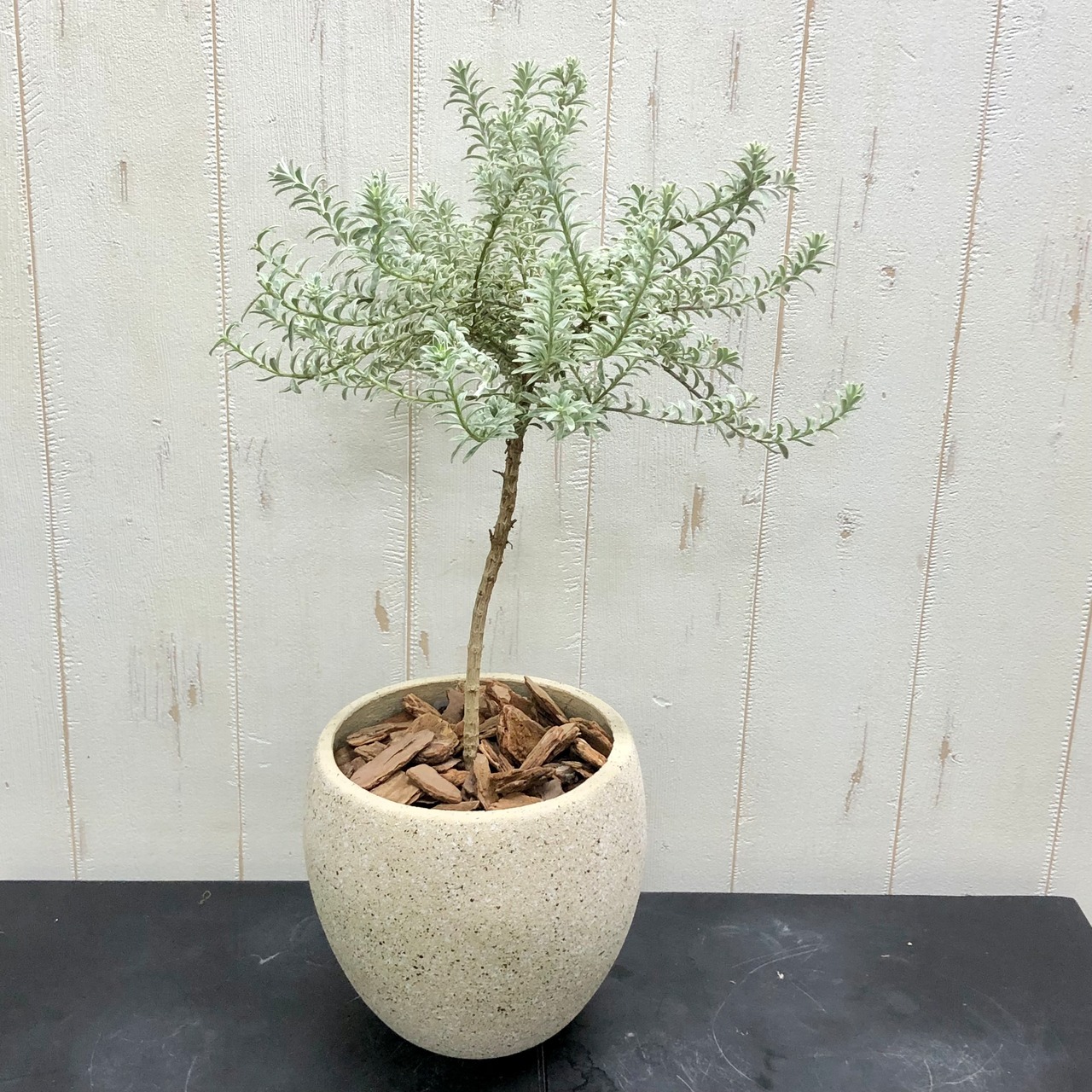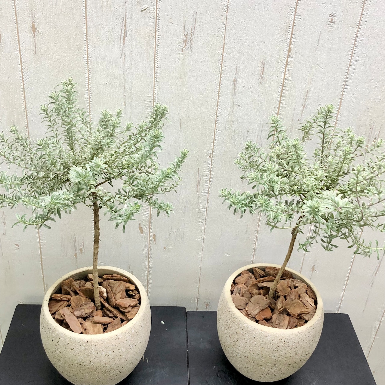 ウエストリンギア スモーキーホワイト トピアリー仕立て アンティークテラコッタ / カーキ