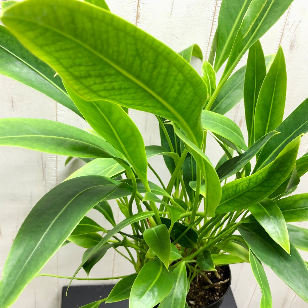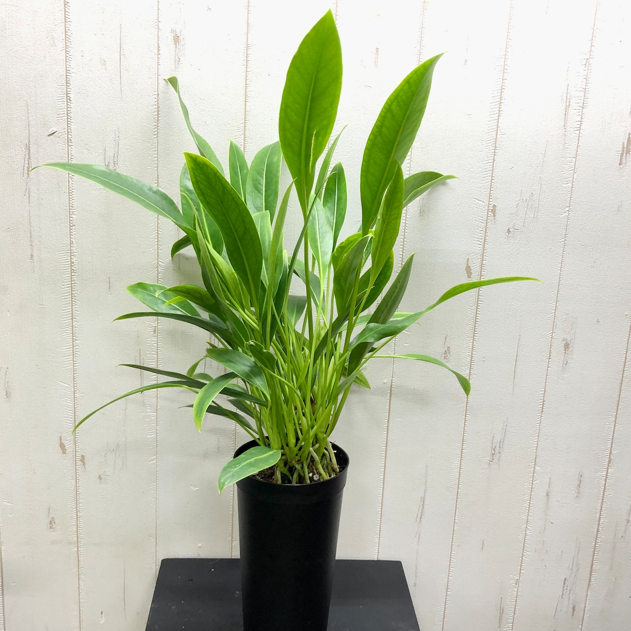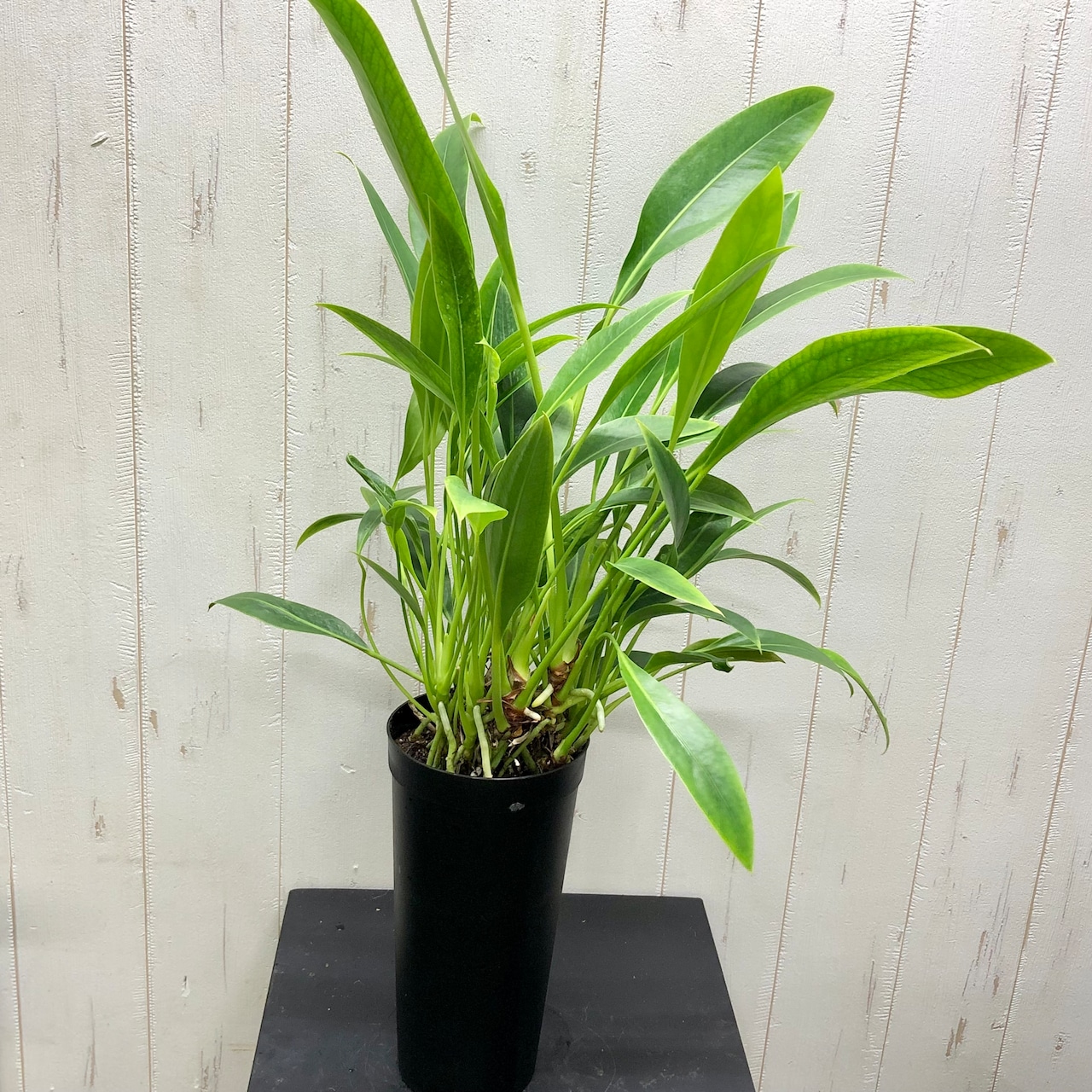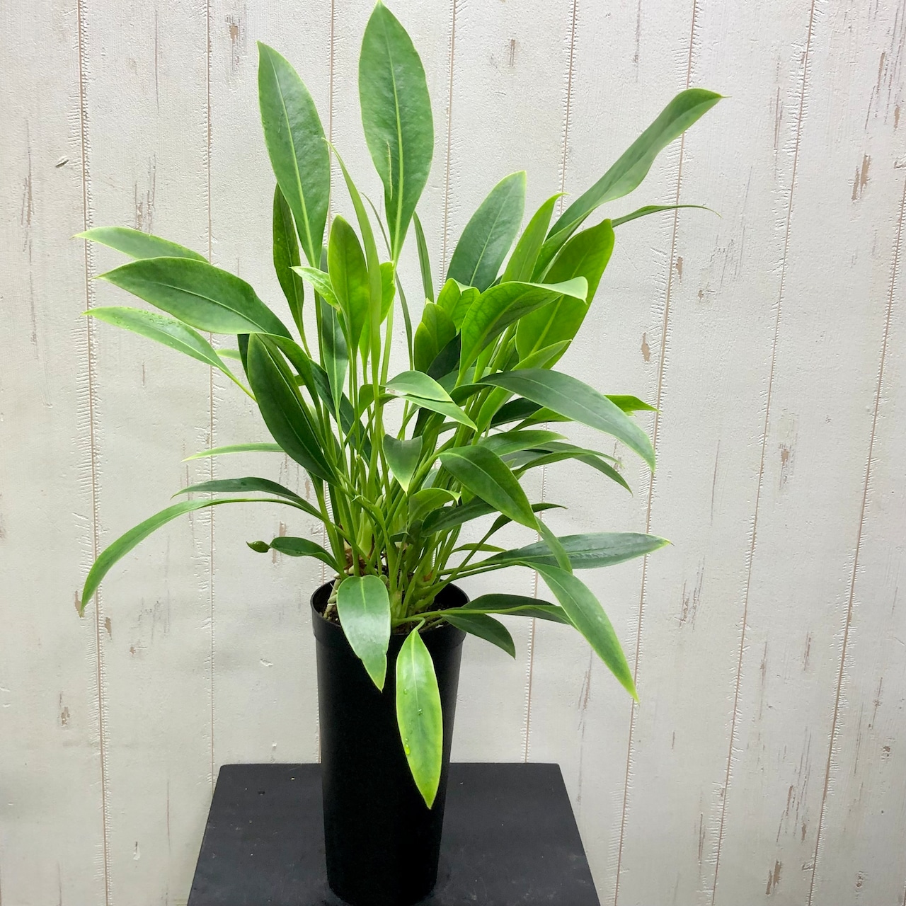 アンスリウムの葉っぱは、大きくウチワのような形をしてたりハート型のような葉っぱがほとんどですが、こちらは細長くすっと立ち上がる葉姿が非常にシンプルで美しいです。