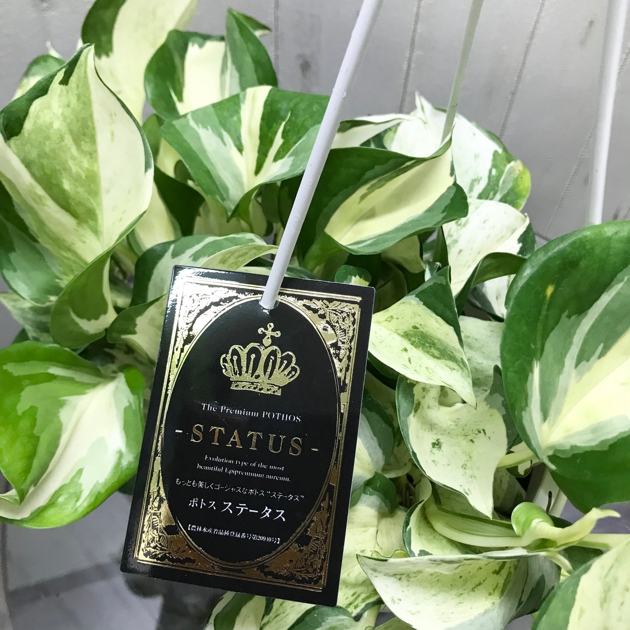 ポトス“エンジョイ”の枝変わりの選抜品種で、とてもゴージャスでポトスの王様というイメージから上級の地位を表す〝ステータス〟と名付けられたようです