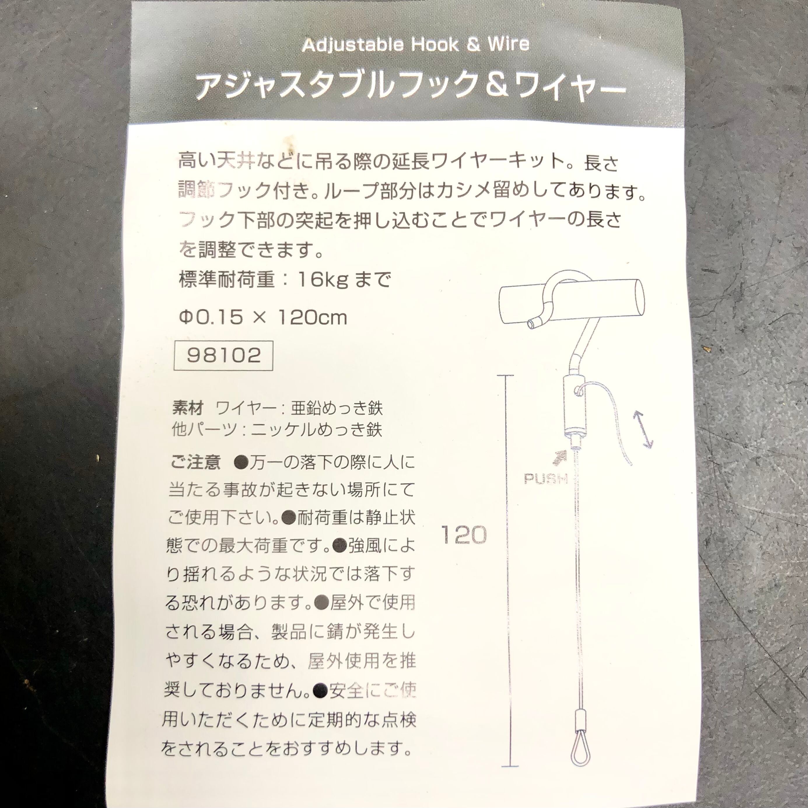 そんな時はこちらの延長ワイヤーキットをおすすめいたします。最大120センチまで延長が可能で標準耐荷重16キロです。