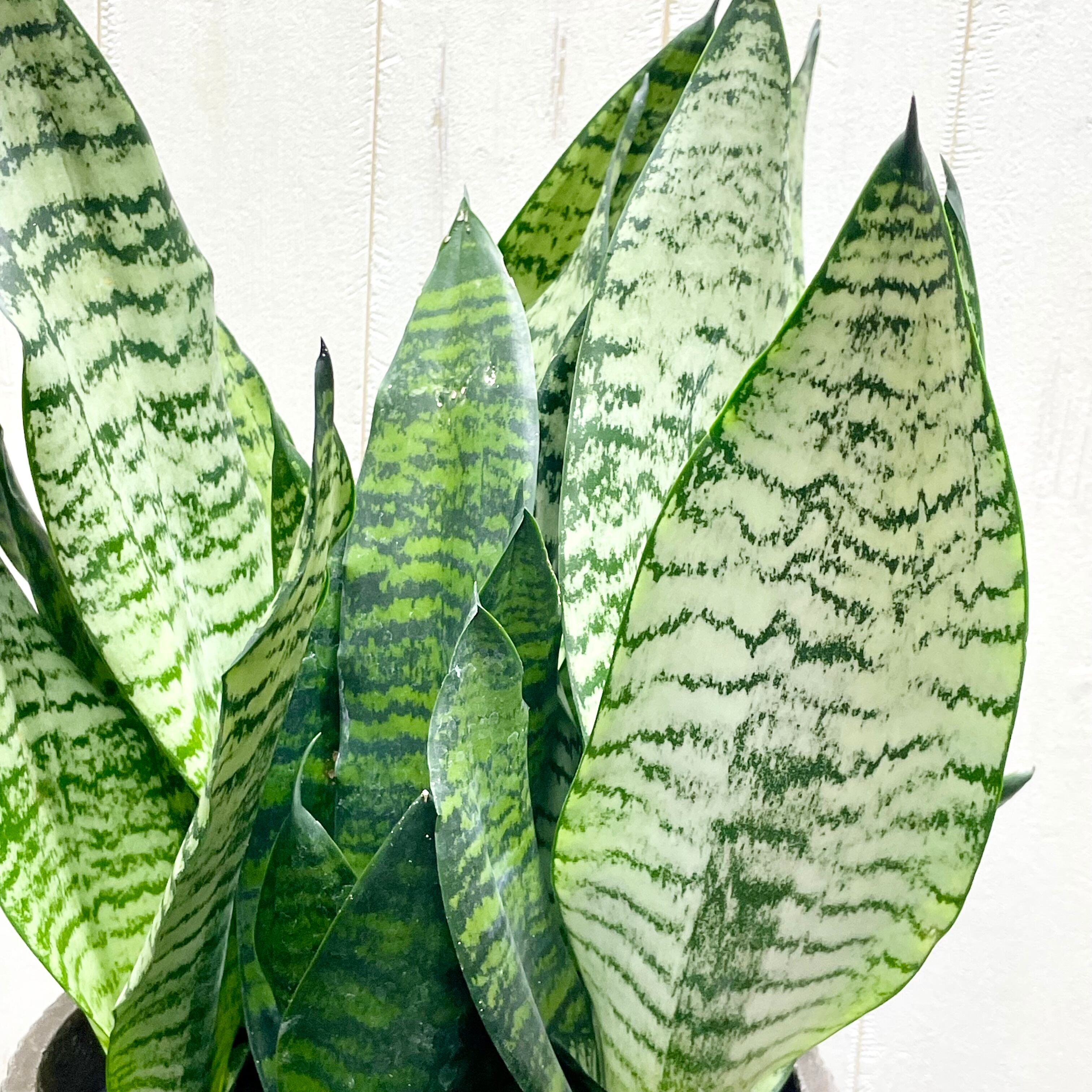 ゼラニカはサンセベリアの中でも落ち着いて印象があり、濃い緑色の葉に波のような縞模様がスタイリッシュです。