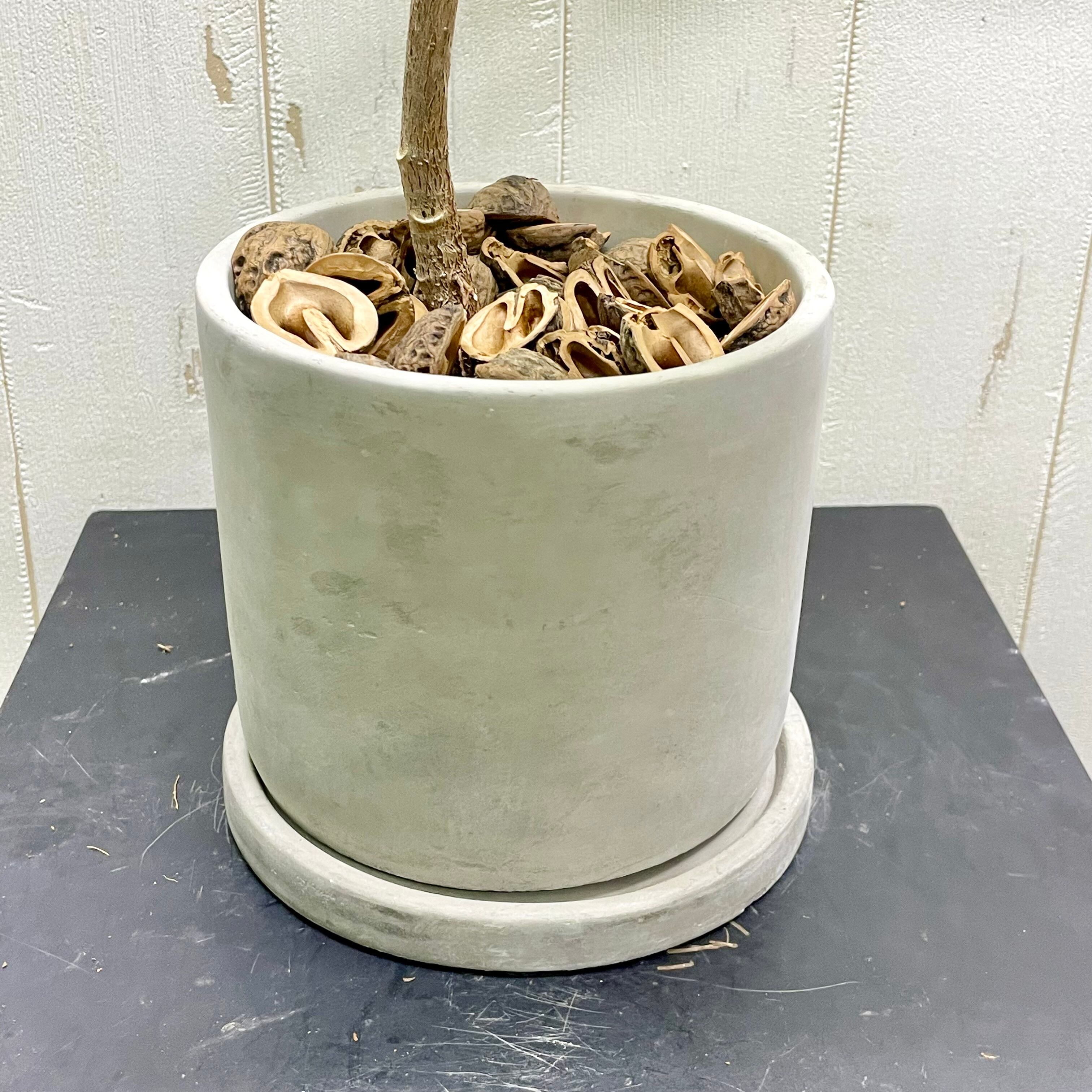 ホワイトウォッシュ加工塗装を施したセメントポット