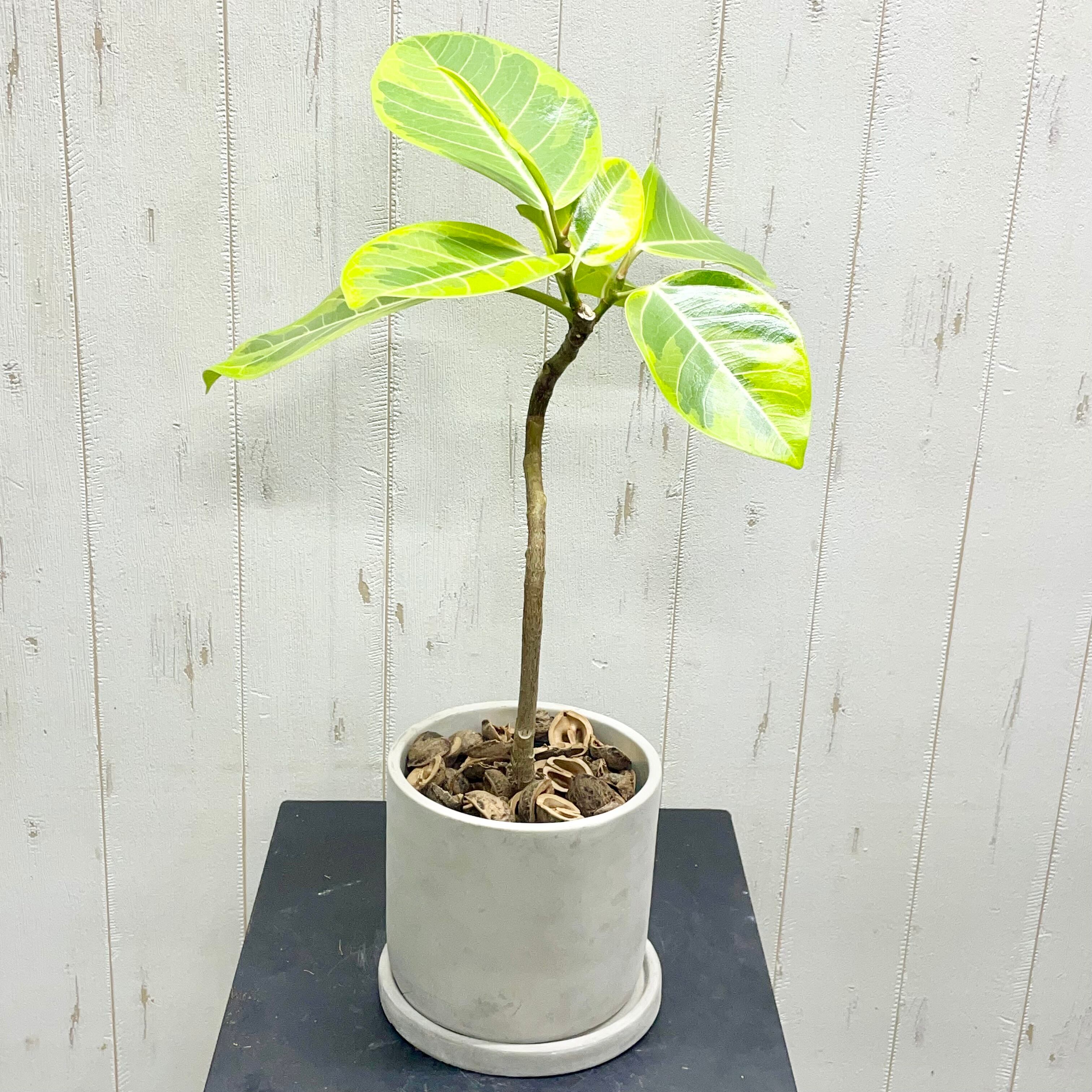 曲がり仕立て フィカス アルテシマ セメント鉢 ホワイトウォッシュ