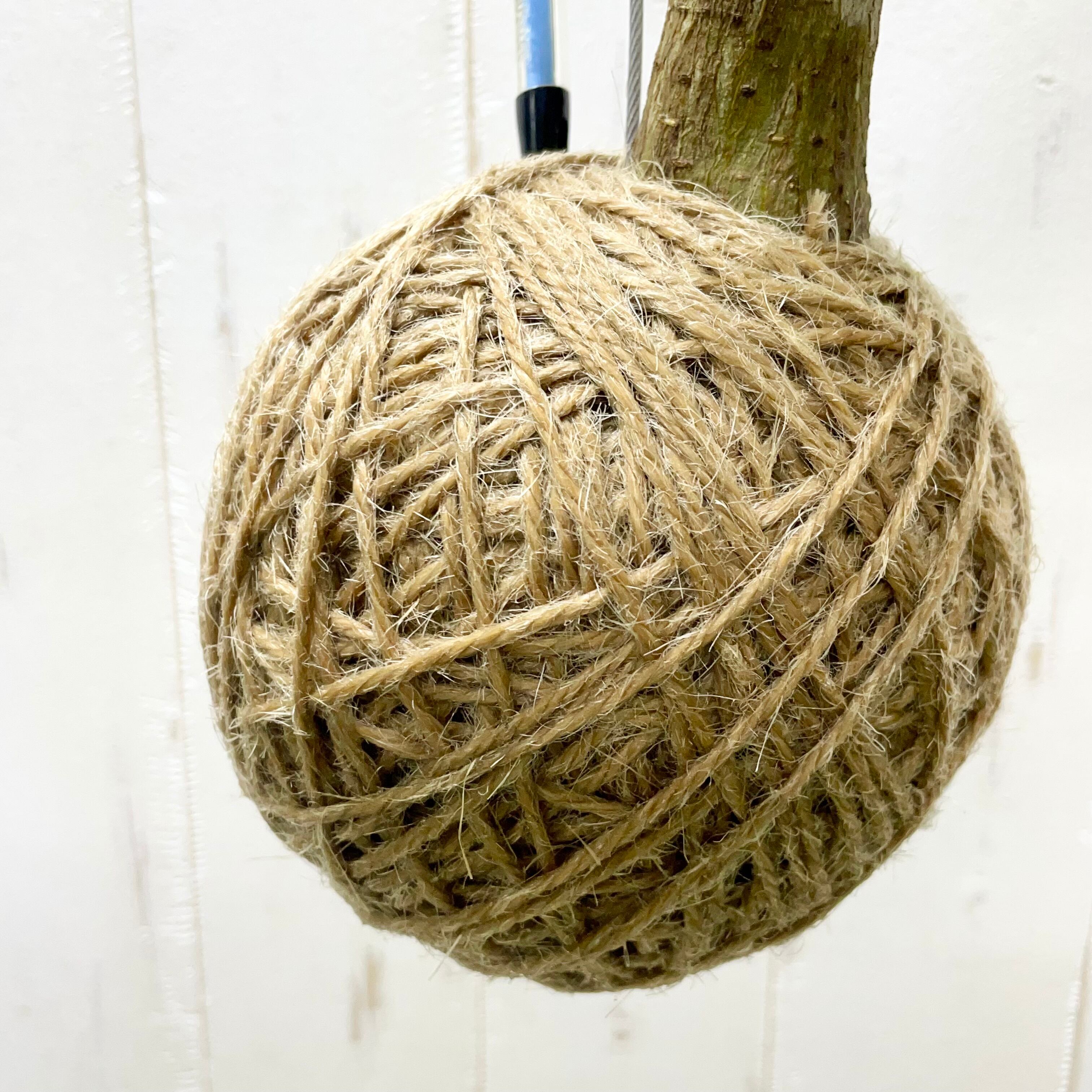 3、ジュート(麻)紐を何重にも隙間なく巻き付け、ボール状に仕上げる。